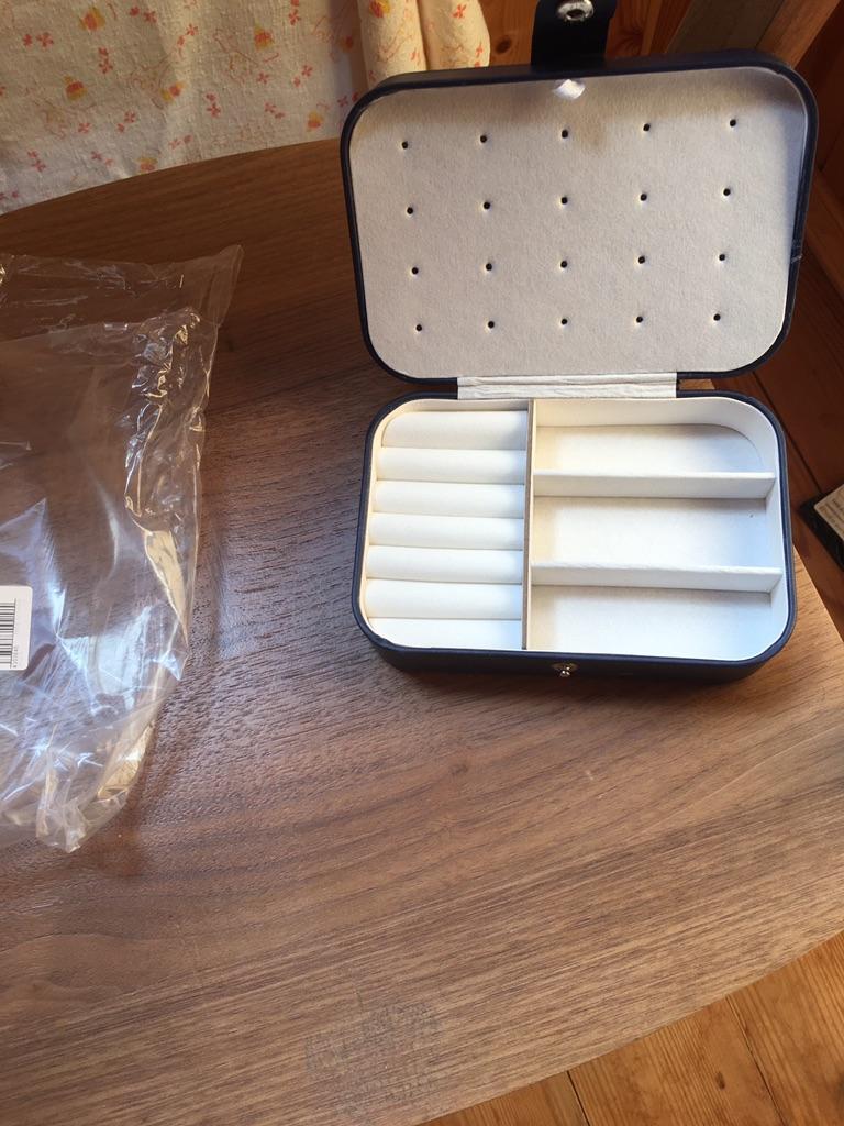 Хорошая шкатулочка розового цвета.Убрала одну внутреннюю перегородку.Поместились кольца,бусы,браслет из жемчуга.Покупкой довольна.