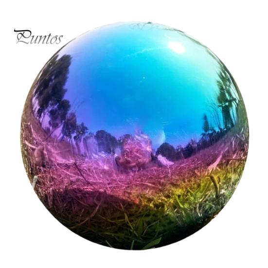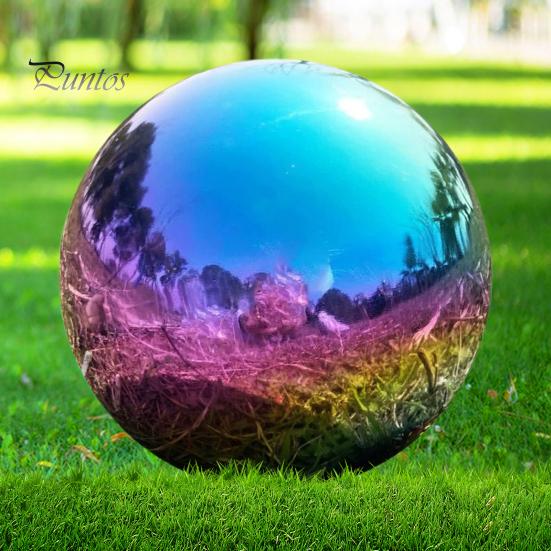Зеркальное отражение на 360°: Наслаждайтесь завораживающей красотой зеркальной поверхности на 360° на этом красочном декоративном шаре.. Отражая окружающий ландшафт с потрясающей четкостью, он создает динамичный визуальный эффект, который усиливает глубину и привлекательность вашего сада или открытой площадки.