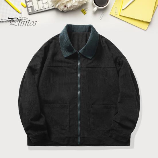 Характеристики: Мужская куртка из вельветовой ткани, воротник с лацканами, длинные рукава, застежка-молния, универсальный, модный, повседневный дизайн, мягкий и удобный материал, сочетающаяся цветовая гамма.