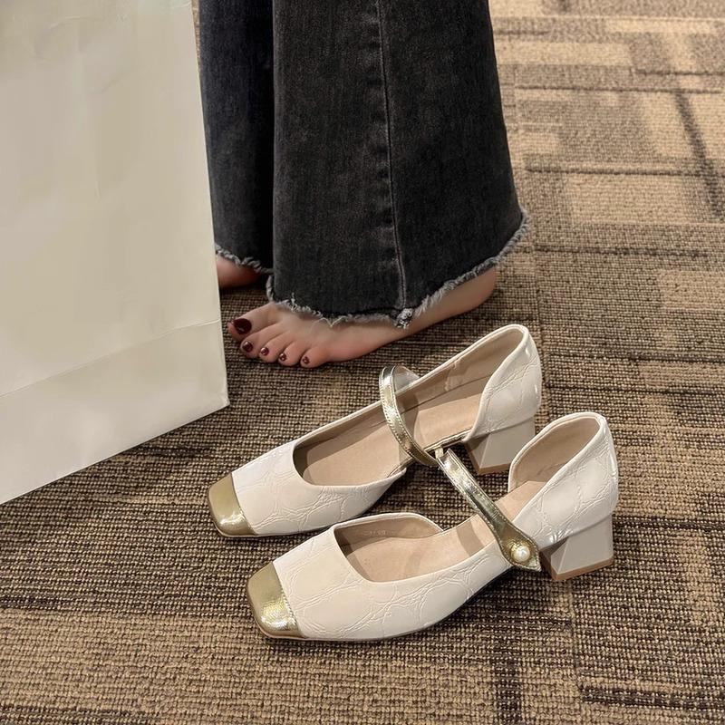 Туфли Мэри Джейн Женская юбка Грубый каблук Сандалии на высоком каблуке Французская фея Нежные одинарные туфли