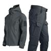 Военные костюмы из мягкой оболочки акулы, мужские тактические ветрозащитные водонепроницаемые куртки, мужские армейские армейские брюки + мужские походные пальто с капюшоном
