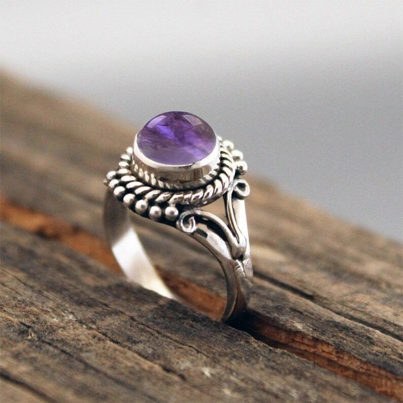Кольцо с аметистом, дизайнерское кольцо в стиле бохо, эффектное кольцо, подарок для нее, женское кольцо, серебро 925 пробы