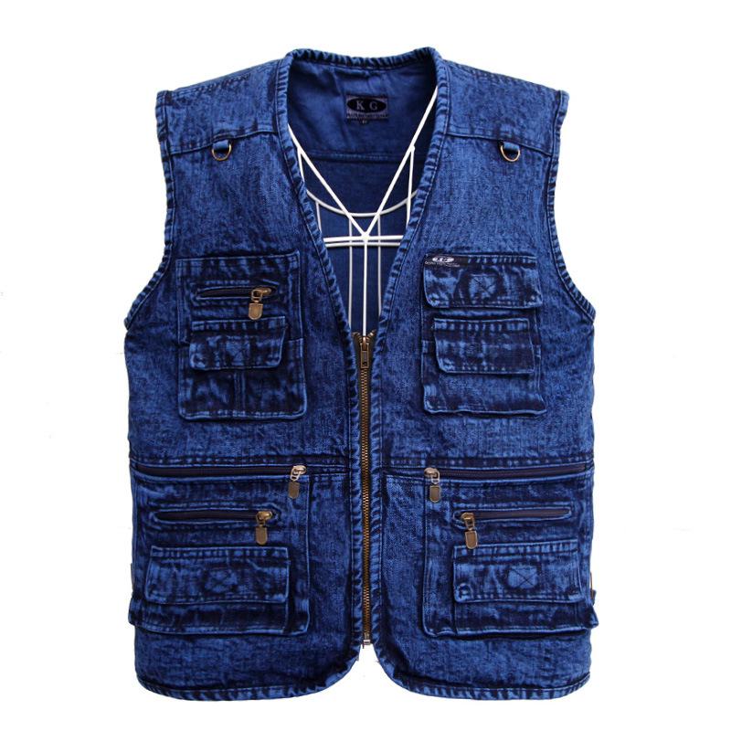 XL-5XL джинсовый жилет для среднего и пожилого возраста, мужской хлопковый жилет с несколькими карманами и удобрениями для увеличения весенне-осеннего мужского жилета