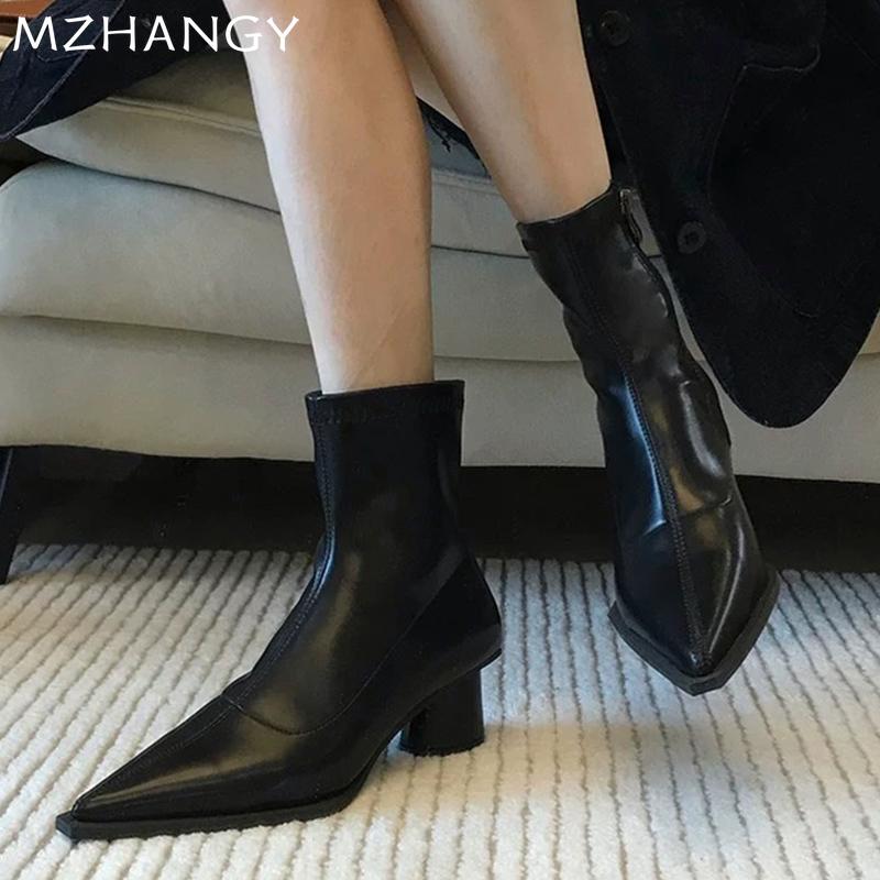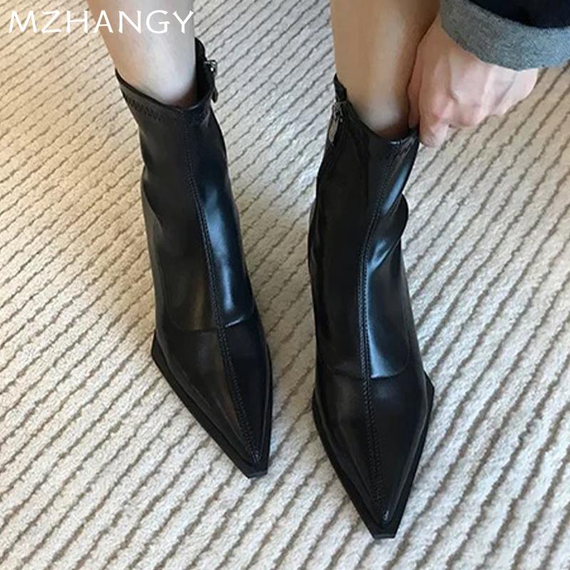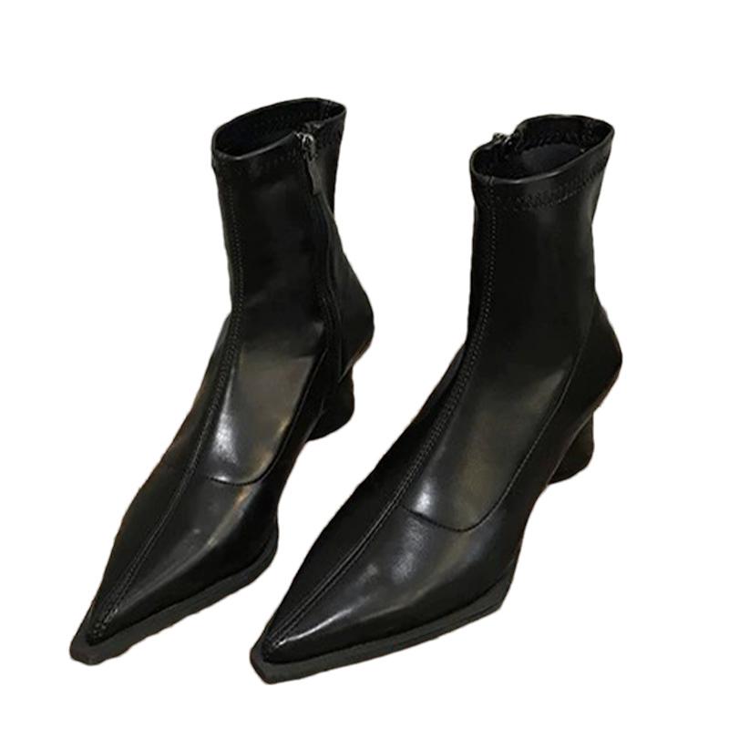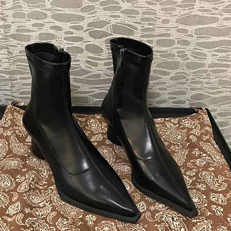 Мода остроносые женские зимние ботильоны на среднем каблуке модная обувь массивные сексуальные ботинки челси 2024 тренд зимние кожаные ботинки женские