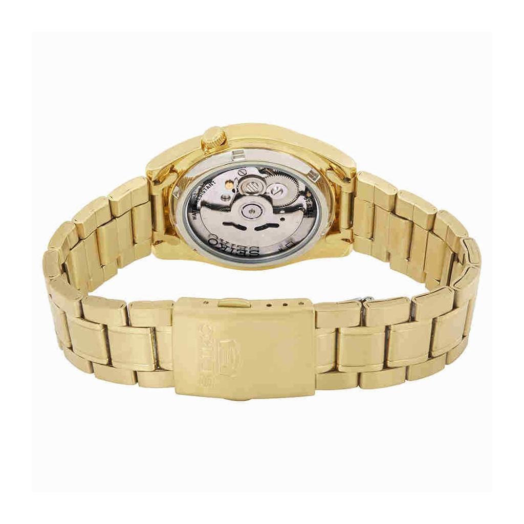 Seiko 5 спортивных золотых тонов из нержавеющей стали с черным циферблатом, 21 камень, автоматические мужские часы SNKL50K1