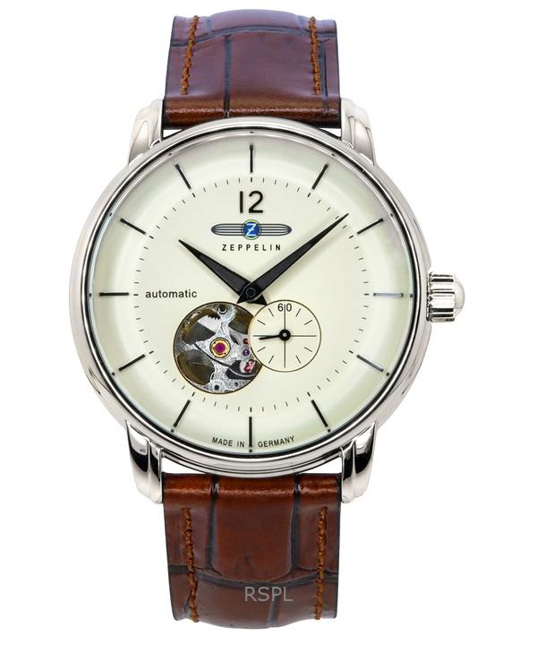 ZEPPELIN LZ-120 Бодензее кожаный ремешок бежевый циферблат с открытым сердцем автоматические 81661 мужские часы