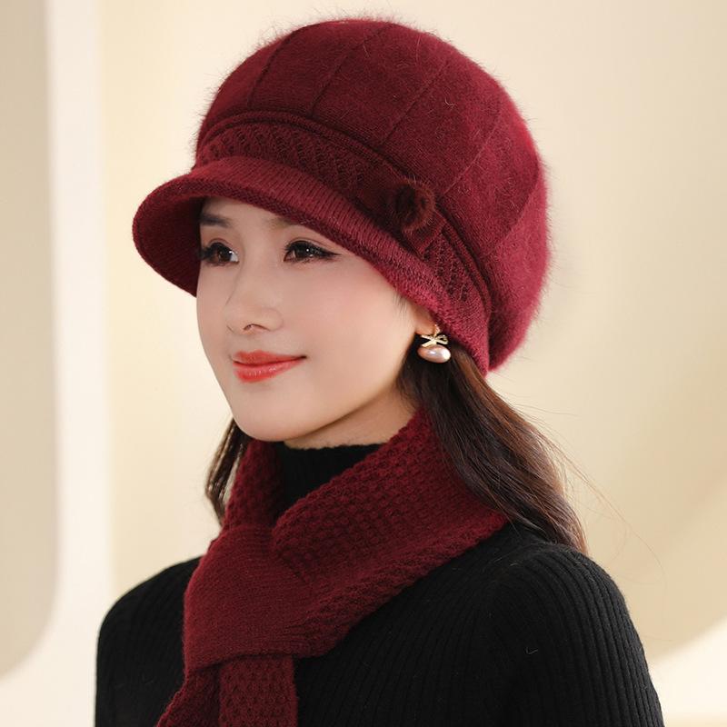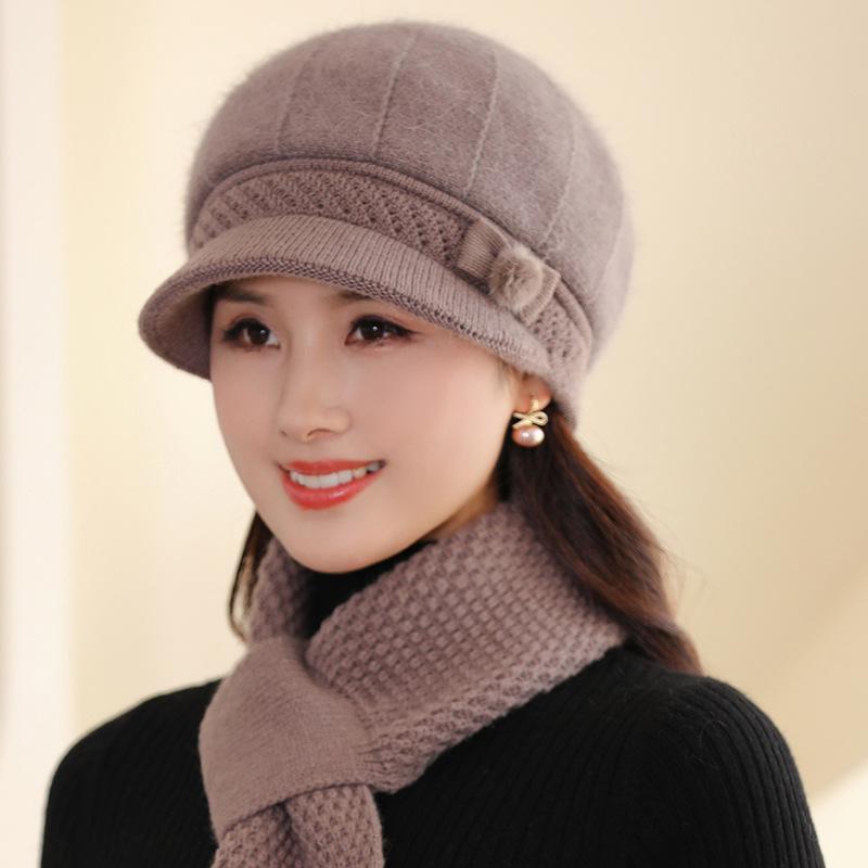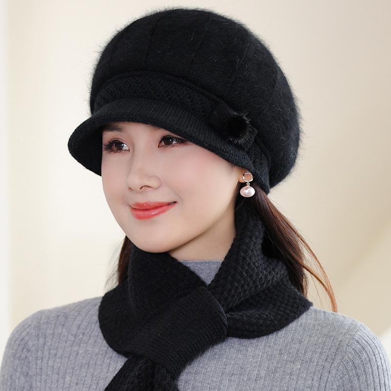 Осенне-зимние шапки для женщин среднего возраста с добавлением толстой трикотажной пряжи, бархатные шапки и кепки (Женский)