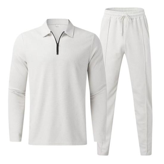 Мужской спортивный костюм с длинными рукавами включает в себя топ с длинными рукавами и брюки на эластичной талии, которые подчеркнут вашу высокую фигуру.