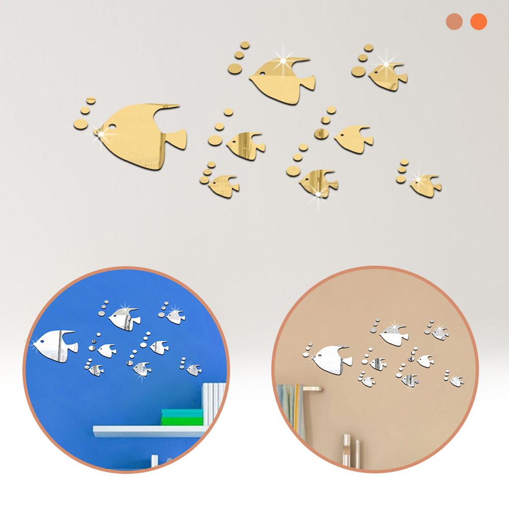 Наклейки на стену с пузырьковой рыбой, зеркальные наклейки с океанической рыбой, акриловые зеркальные наклейки на стену