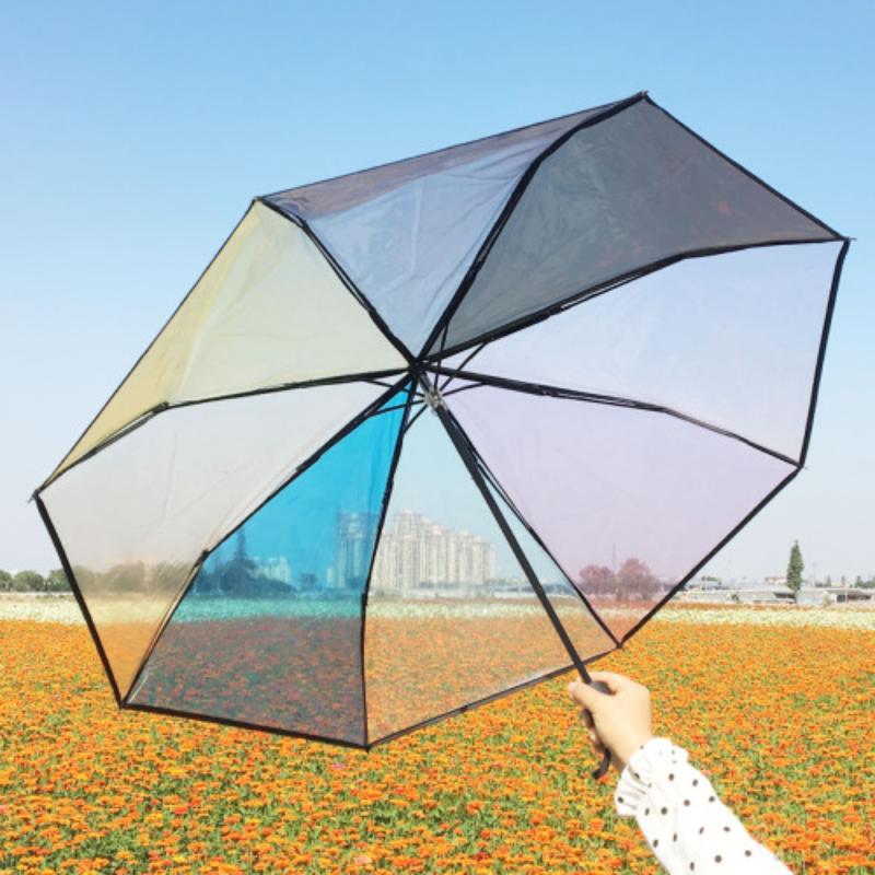 Многоцветный прозрачный ветрозащитный зонт радужного цвета для путешествий, женский три складных прозрачных УФ-автоматических зонтика от дождя