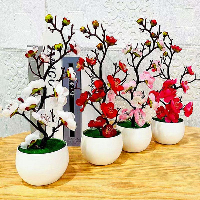 1 шт. офисный настольный бонсай ваза орнамент шелковый цветок искусственные растения в горшках фон цветок сливы