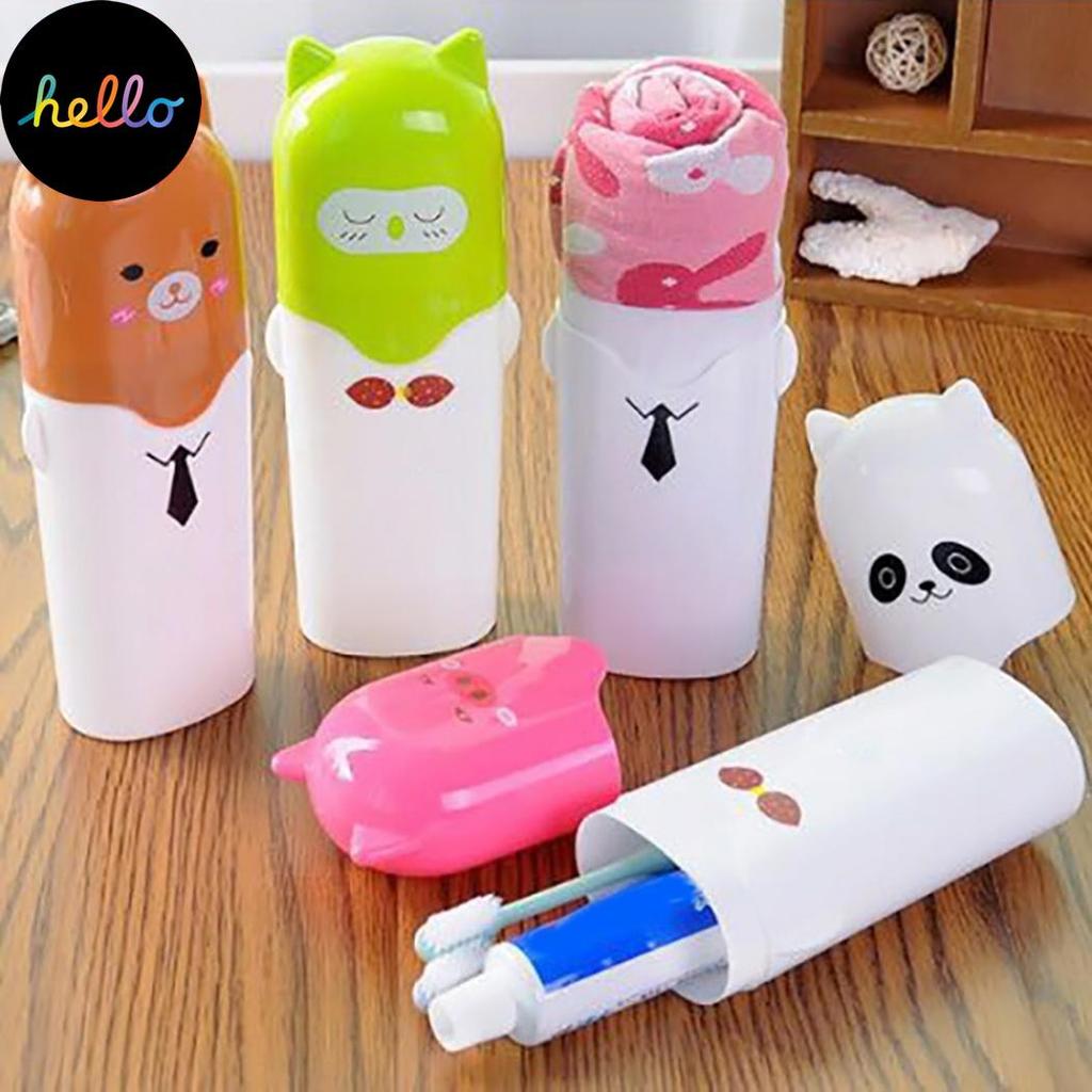 Портативная милая мультяшная дорожная зубная щетка, зубная паста, коробка для хранения полотенец с крышкой