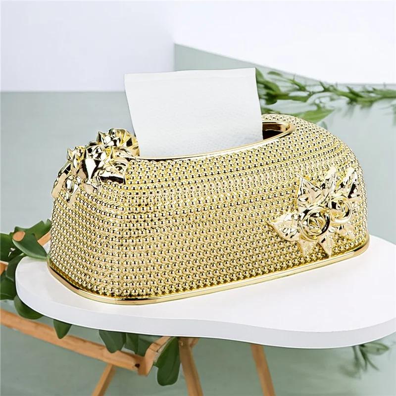 Роскошный держатель для коробки для салфеток в европейском стиле с резной розой, коробка для салфеток с гальваническим покрытием подходит для обеденных столов, гостиных, спален, кухонь