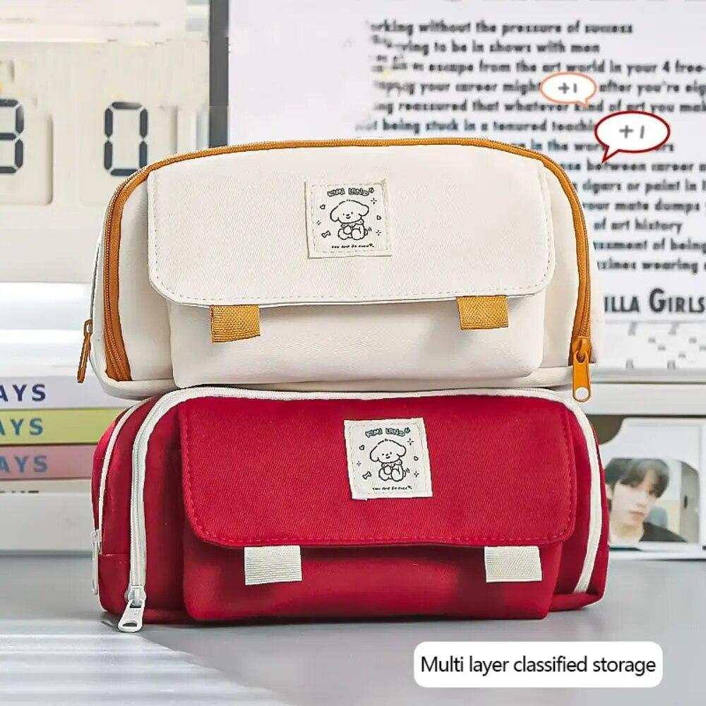 Холщовая сумка-карандаш, креативный многофункциональный портативный чехол для ручек, канцелярский чехол большой емкости, школьные принадлежности для студентов