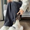 Зимние теплые утолщенные прямые брюки из овечьей шерсти, женские повседневные эластичные брюки с высокой талией и флисовой подкладкой, широкие брюки, шикарные мешковатые брюки