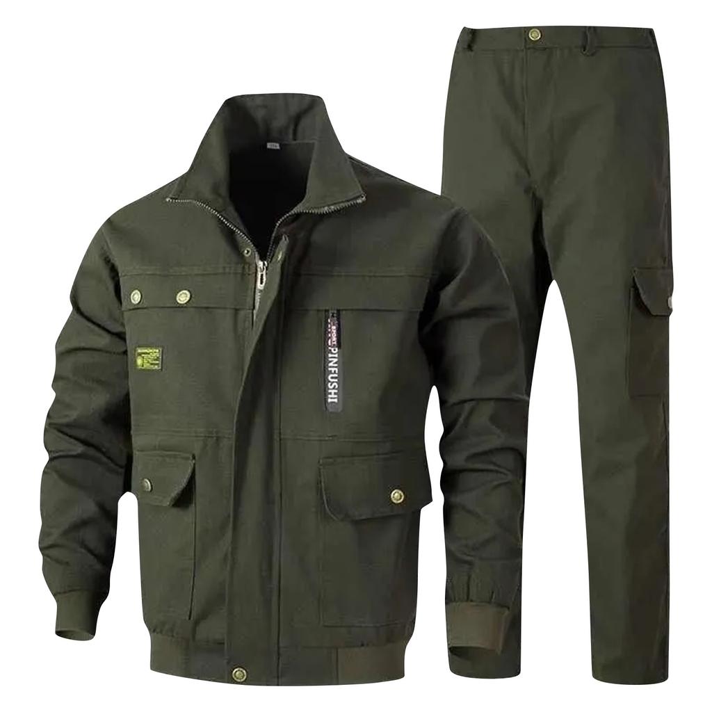 Мужская рабочая одежда из хлопковой смеси с несколькими карманами, комплект из куртки и брюк на весну и осень