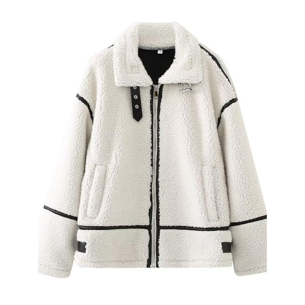Женское пальто из плюшевой овчины, куртка с лацканами, молния, контрастный цвет, интегрированное пальто, универсальное осенне-зимнее теплое утолщенное пальто