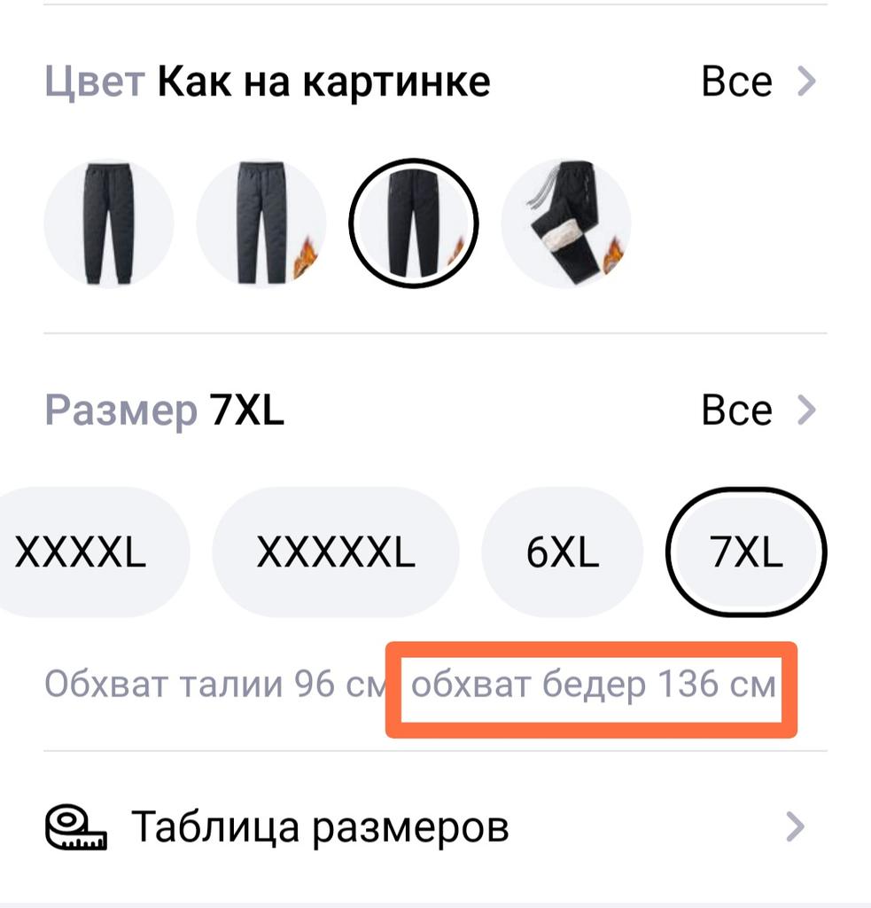Очень долго ждала эти брюки. Получила через 2,5месяцапосле заказа. И очень была разочарована. Потому что заказывала размер 7Х с обьемом бёдер 136,амне выслали 6Х, судя по объёму бёдер 122. А так качество брюк - не придраться. Сшиты качественно, мягкие лёгкие.