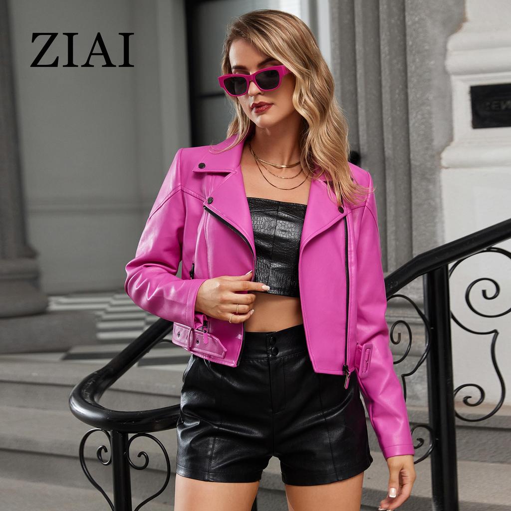 ziai Короткая куртка из искусственной кожи для женщин с косой молнией и лацканами, свободный водонепроницаемый плащ, модное уличное пальто из искусственной кожи ZP-23812