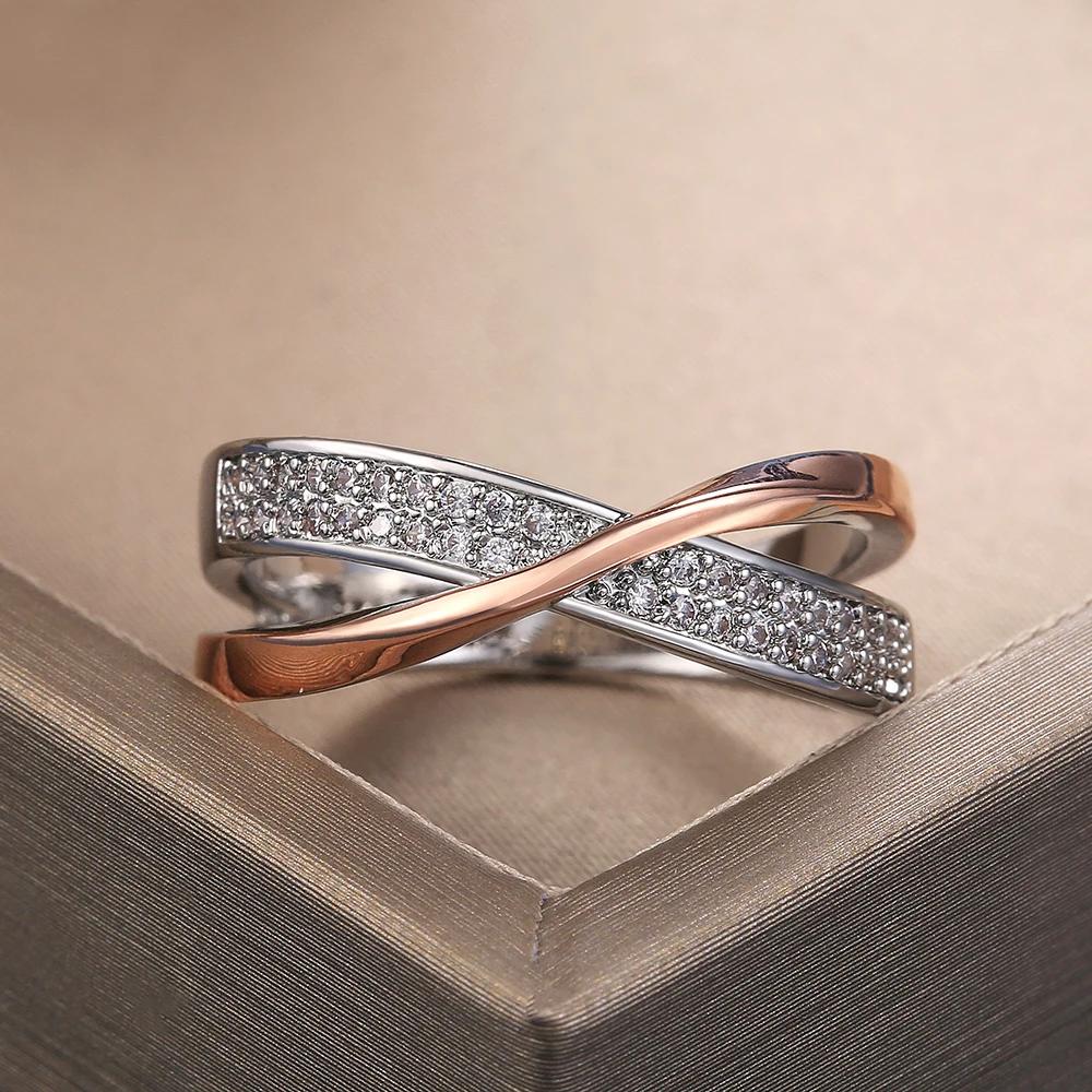 Нежные простые двухцветные кольца в форме креста из розового золота с ослепительным цирконием и бесконечностью для женщин — купить товар онлайн с бесплатной доставкой по всему миру!