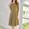 Женское повседневное модное платье миди с круглым вырезом и рукавом три четверти — купить товар онлайн с бесплатной доставкой по всему миру!