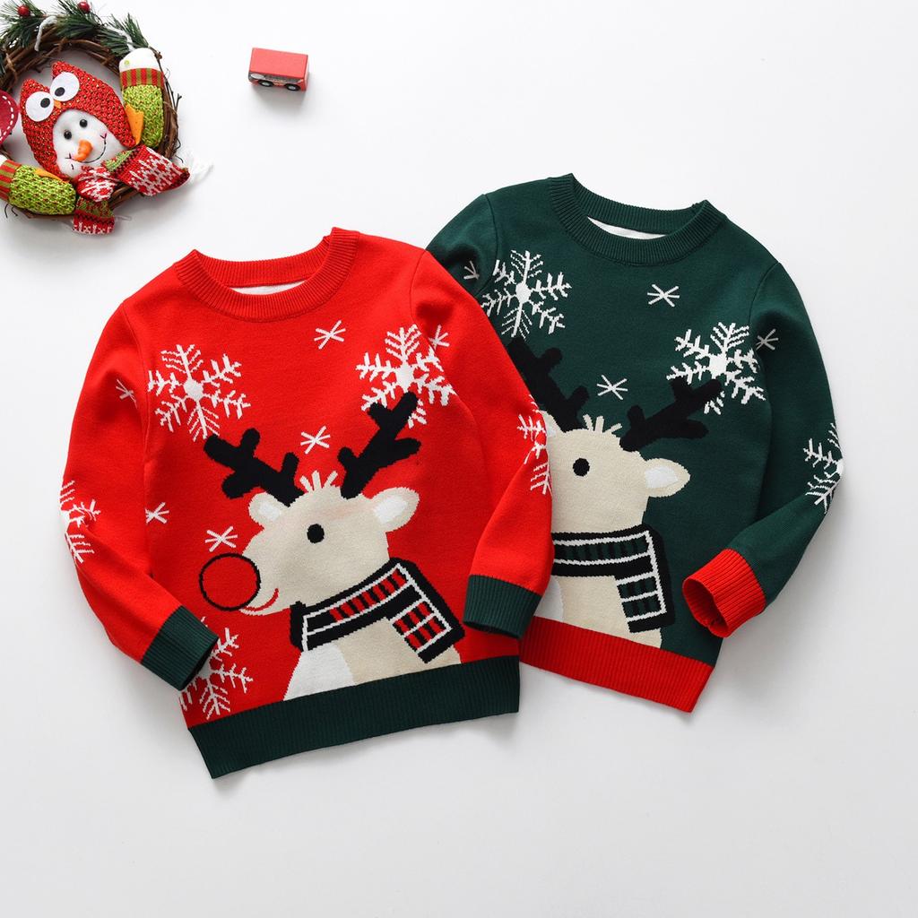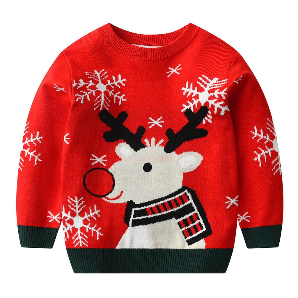 Рождественский вязаный свитер с принтом для маленьких мальчиков и девочек, трикотажная одежда