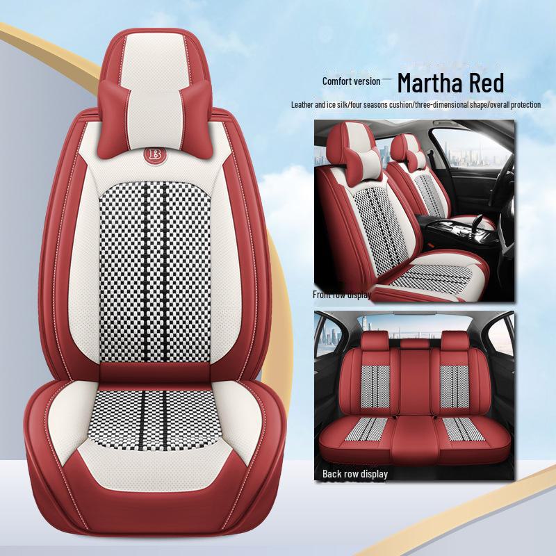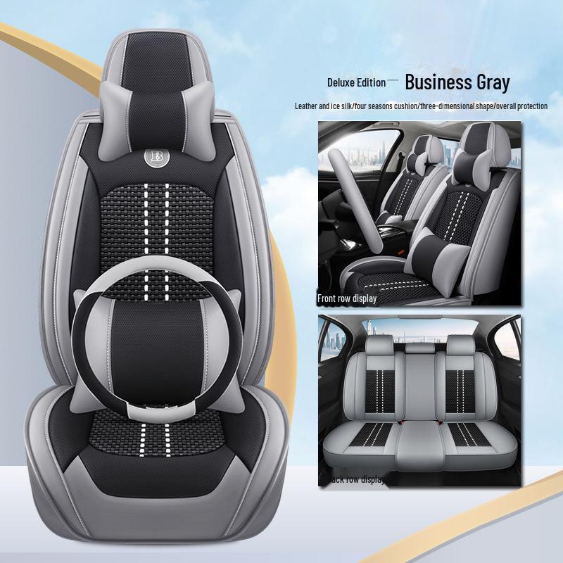 Подушка на сиденье автомобиля нового стиля 2024 года с кожаной строчкой по всему периметру, Ice Silk, поддержка поясницы — универсальная, подходит для всех сезонов
