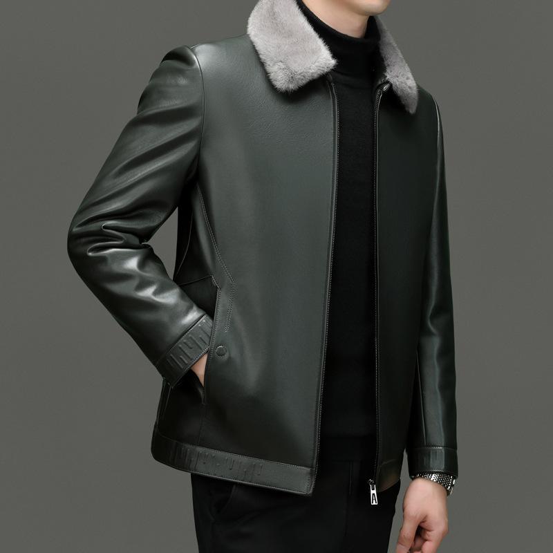 Зимняя одежда для мужчин среднего и пожилого возраста, куртка из натуральной кожи, свободная повседневная утепленная куртка-пуховик, кожаная куртка
