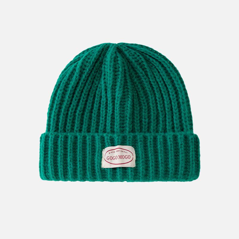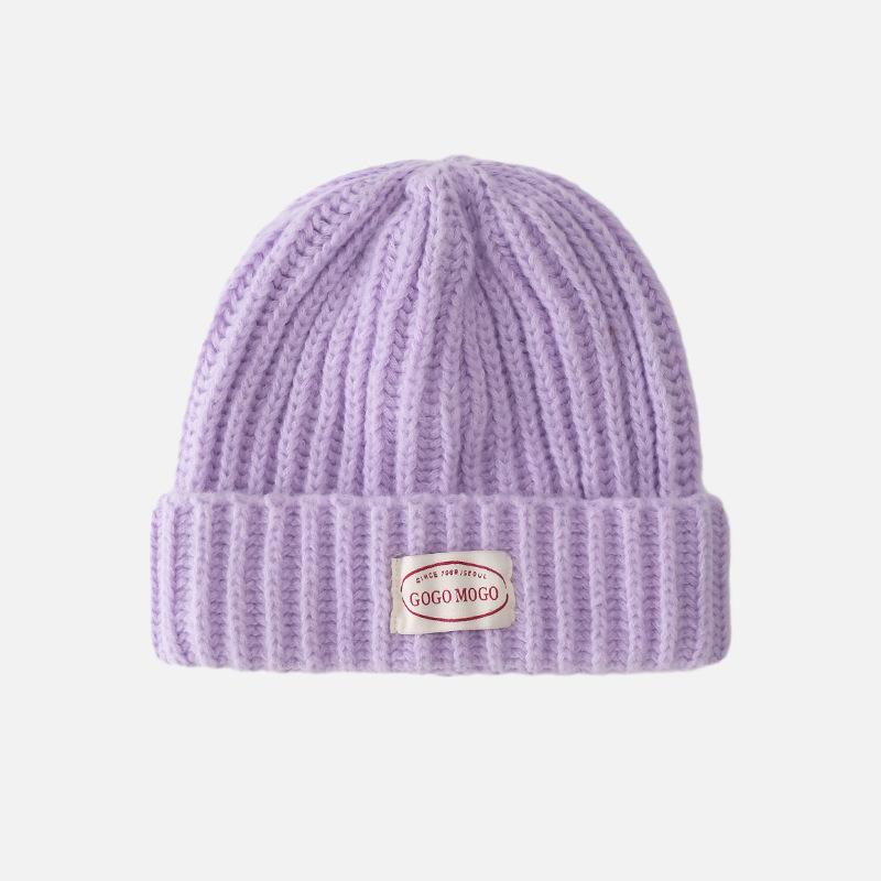 Шерстяная шапка с нашивкой в виде буквы для женщин на осень и зиму, небольшая ветрозащитная защитная шапка для ушей, открывающая лицо, модная и универсальная теплая вязаная шапка