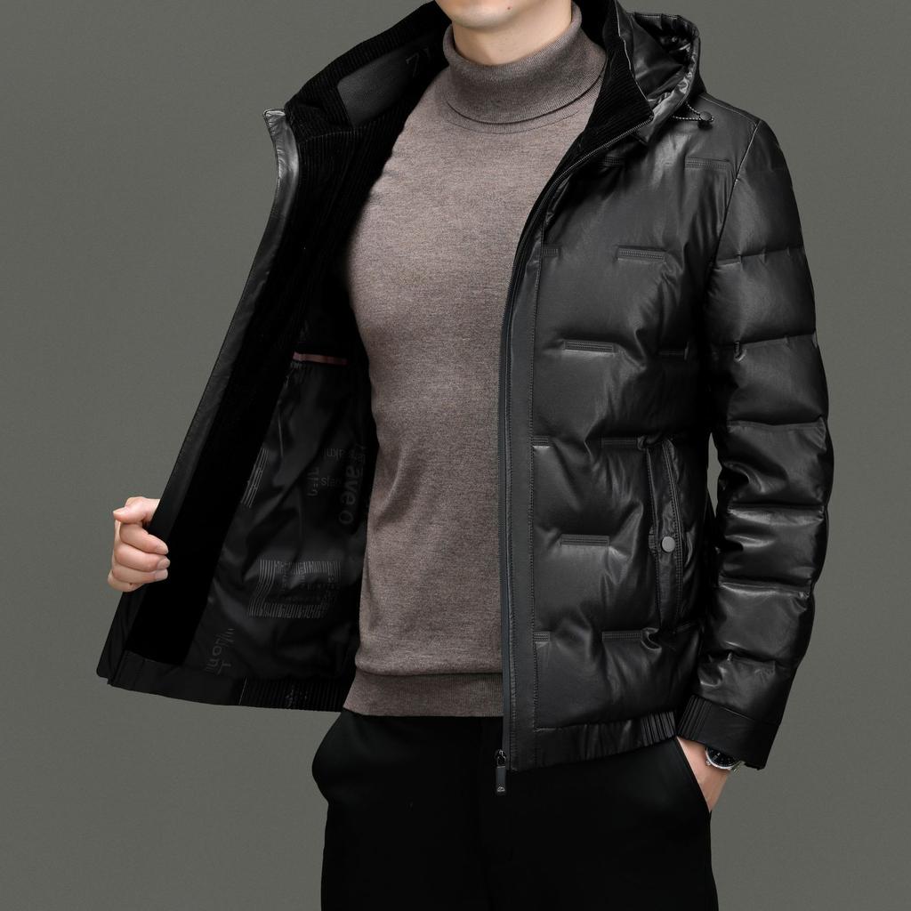 Зимняя куртка из натуральной кожи, мужская куртка с капюшоном большого размера, куртка из овчины, повседневная кожаная куртка для папы