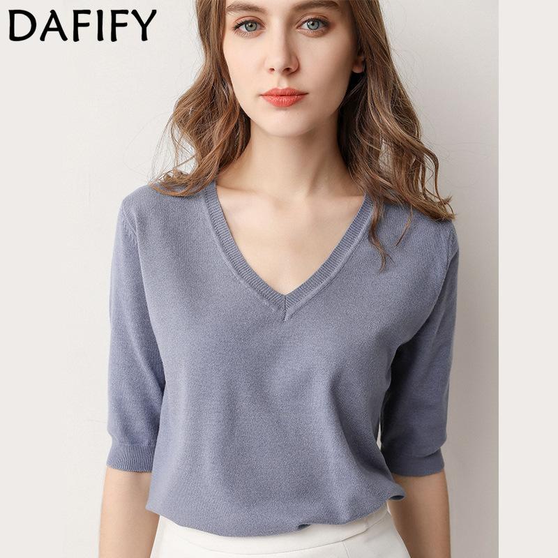 DAFIFY Женские модные повседневные летние весенние однотонные блузки и рубашки с v-образным вырезом и короткими рукавами с принтом