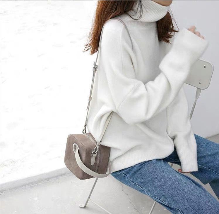 Женский свитер Свободный свитер с высоким воротом Теплый однотонный эластичный пуловер Трикотаж Базовый женский топ свитер для женщин