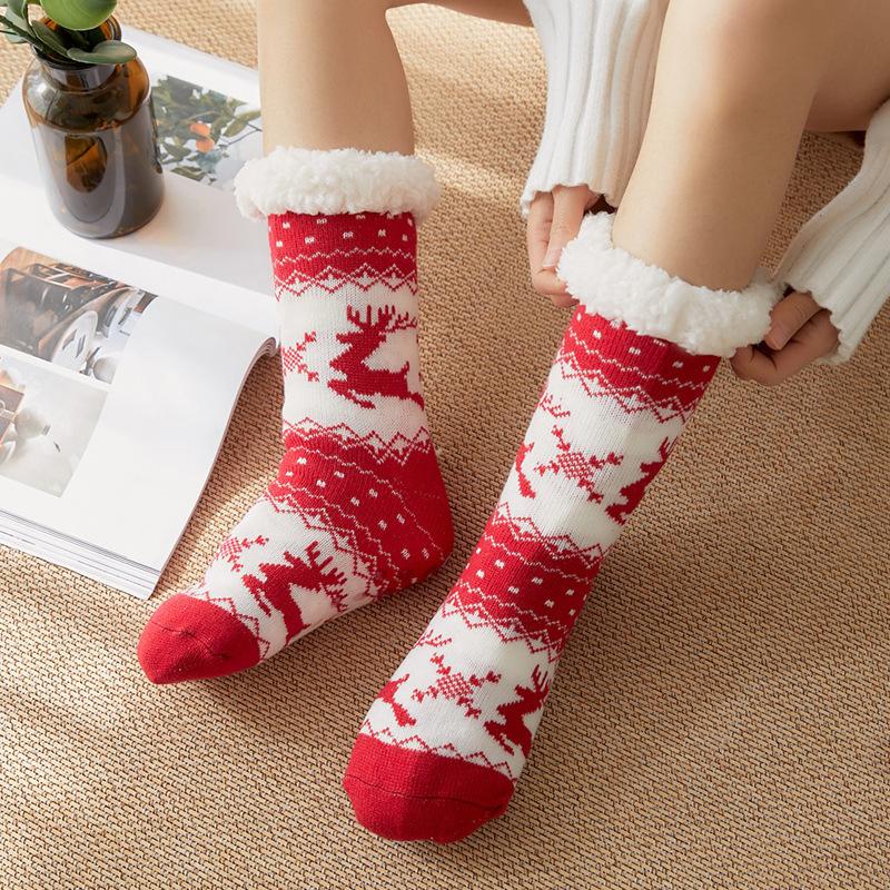 Рождественские носки Носки-тапочки Утепленные зимние носки Теплые домашние носки для сна Нескользящие женские носки