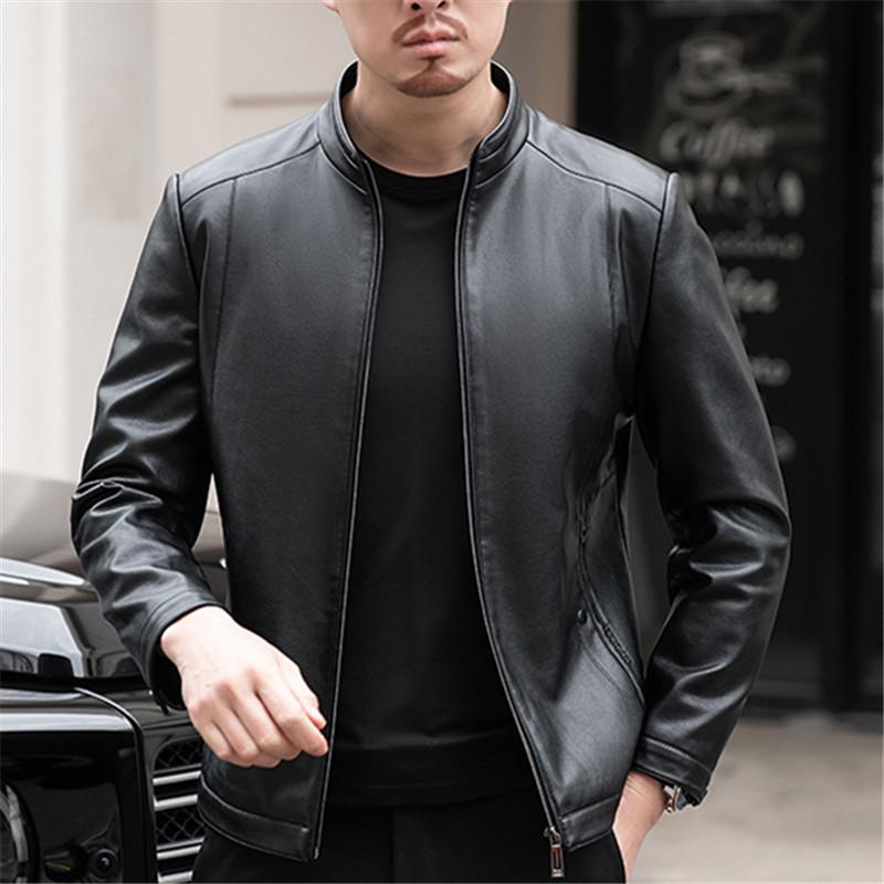 Осенняя куртка из натуральной кожи, мужская, деловая, повседневная, с воротником-стойкой, короткая, кожаная куртка большого размера — купить товар онлайн с бесплатной доставкой по всему миру!