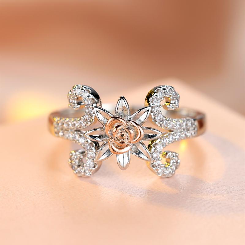 Блестящие цветочные кольца для женщин и девушек, романтическое розовое золото, цветное кольцо с цирконием, модные ювелирные изделия