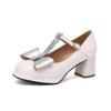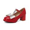 Meotina Женские туфли Мэри Джейн на высоком толстом каблуке с круглым носком и завязывающимся бантом, модная женская обувь весна-осень, розовые, черные, 46