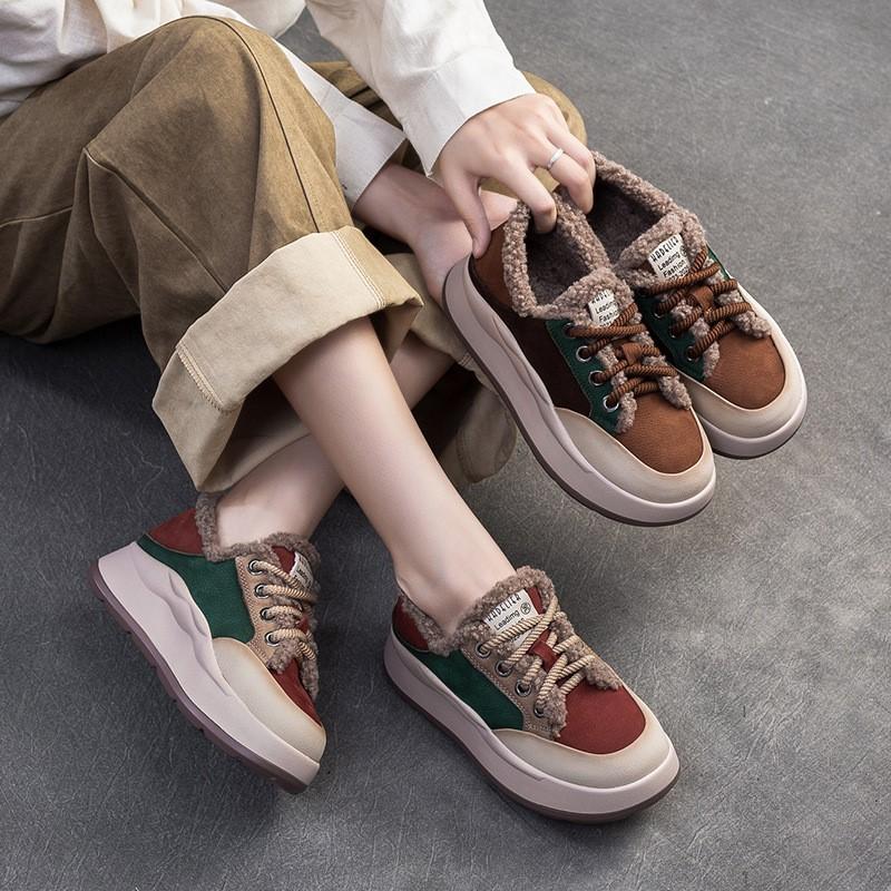 Johnature Plush Теплые разноцветные хлопковые туфли из натуральной кожи с мягкой подошвой Удобные женские туфли на плоской платформе — купить товар онлайн с бесплатной доставкой по всему миру!