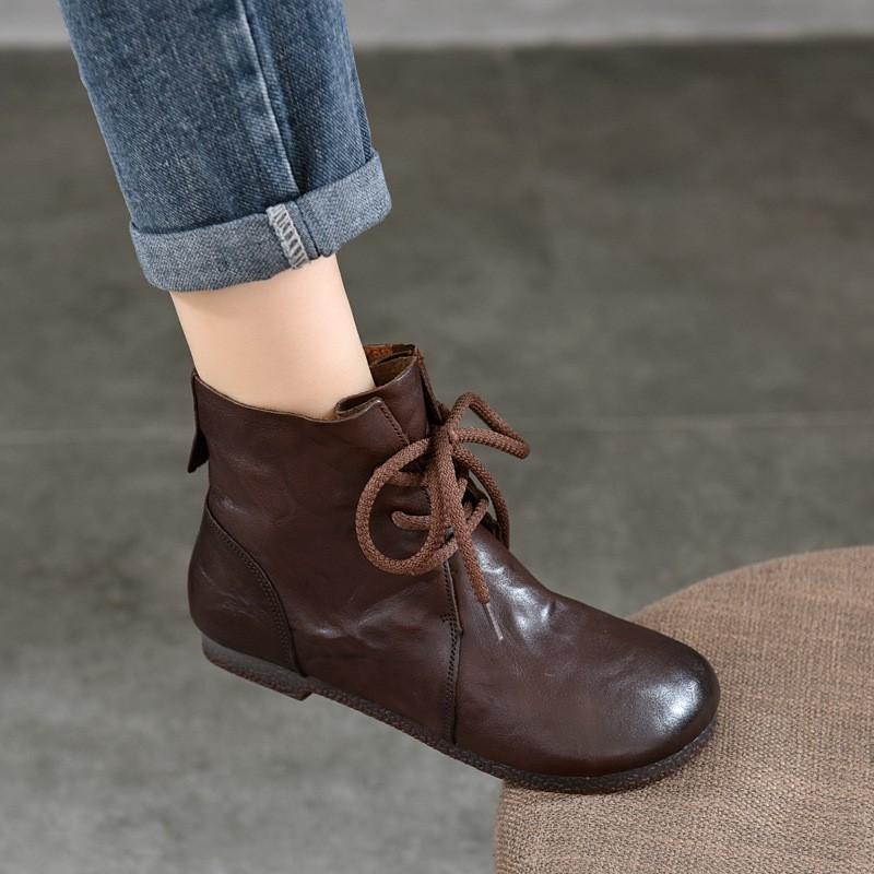 Johnature Короткие ботинки из натуральной кожи с круглым носком на плоской подошве, на мягкой подошве, со шнуровкой, женские туфли