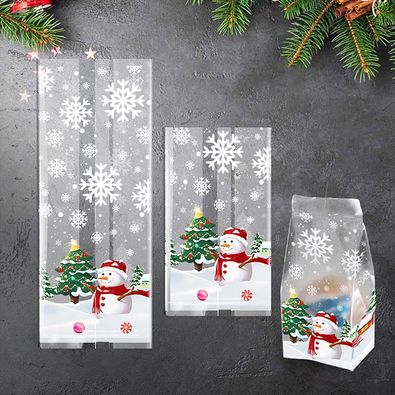 50 шт. Рождественский милый снеговик, пластиковые подарочные пакеты, упаковка для конфет, печенья, выпечки, веселое украшение на Новый год 2025
