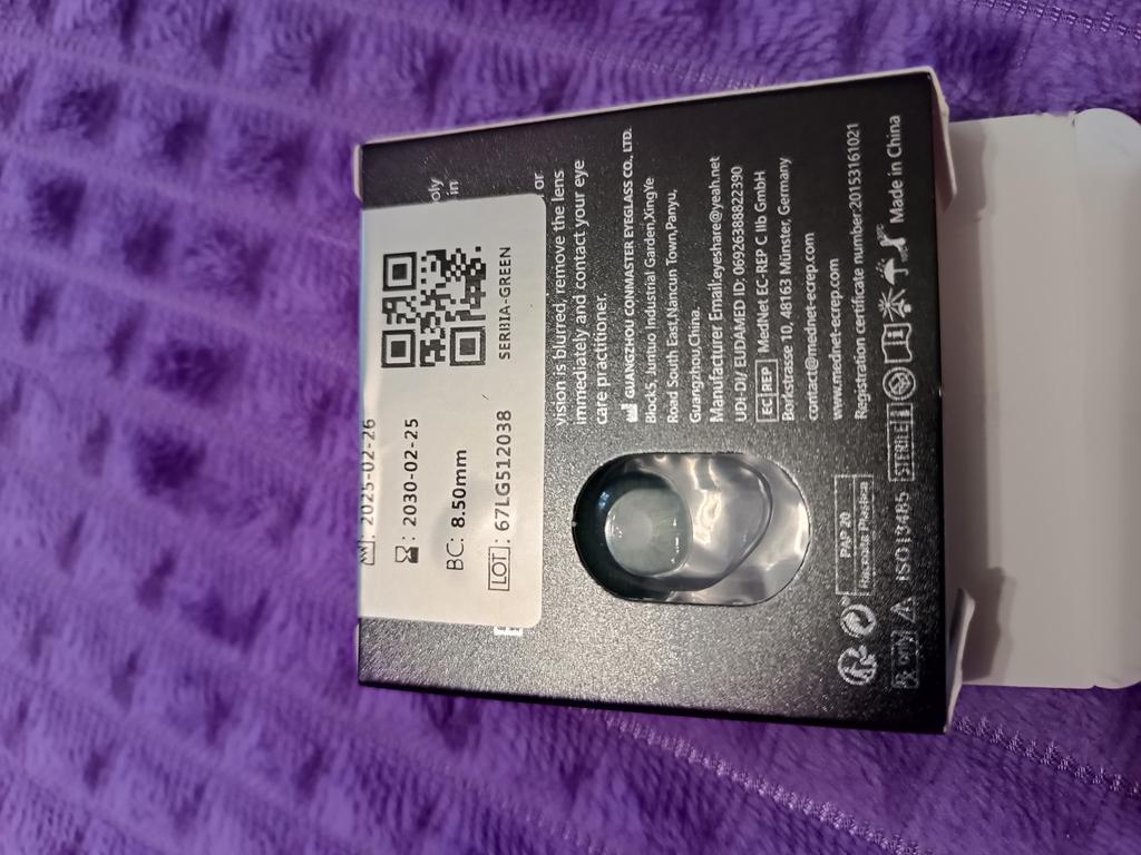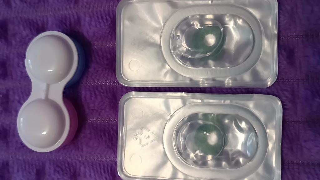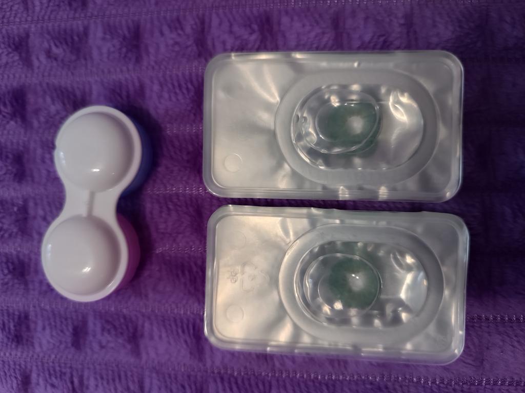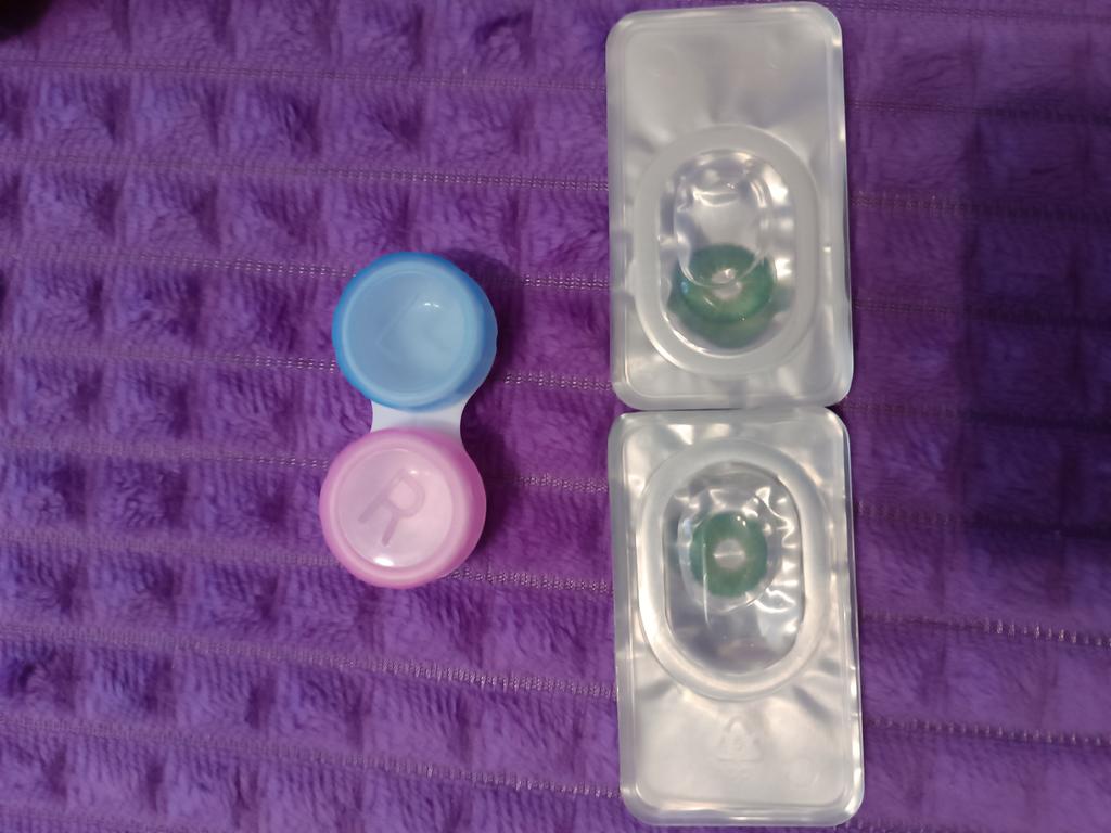 Заказ от 29 октября пришёл 6 декабря. В посылке было два заказа. Вот такие вот линзы фиолетового цвета, не знаю смогу ли надеть. Довольно крупные.