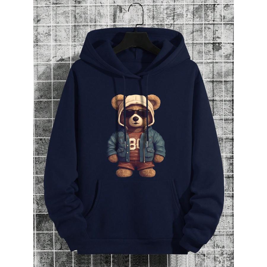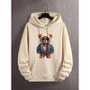 Manfinity Dauomo Men Bear Print Kengaroo Pocket Drawstring Thermal Hoodie — купить товар онлайн с бесплатной доставкой до всему миру!