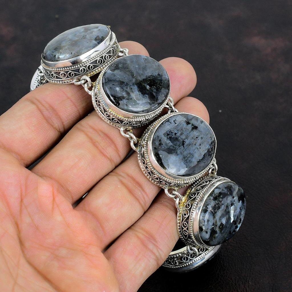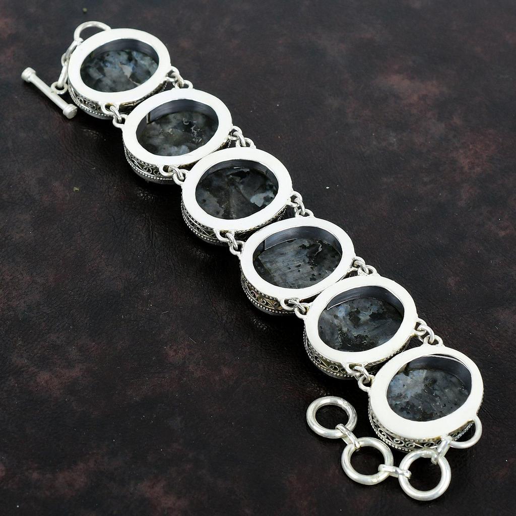 Браслет из лабрадорита, браслет из стерлингового серебра 925 пробы, украшения из натуральных драгоценных камней, браслет с регулируемой цепочкой ручной работы, винтажный браслет, подарок для мамы