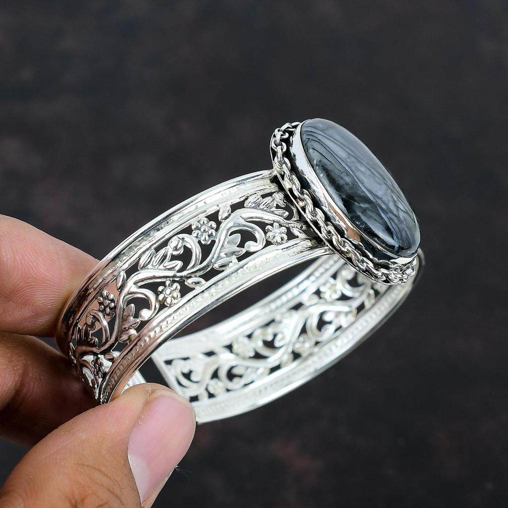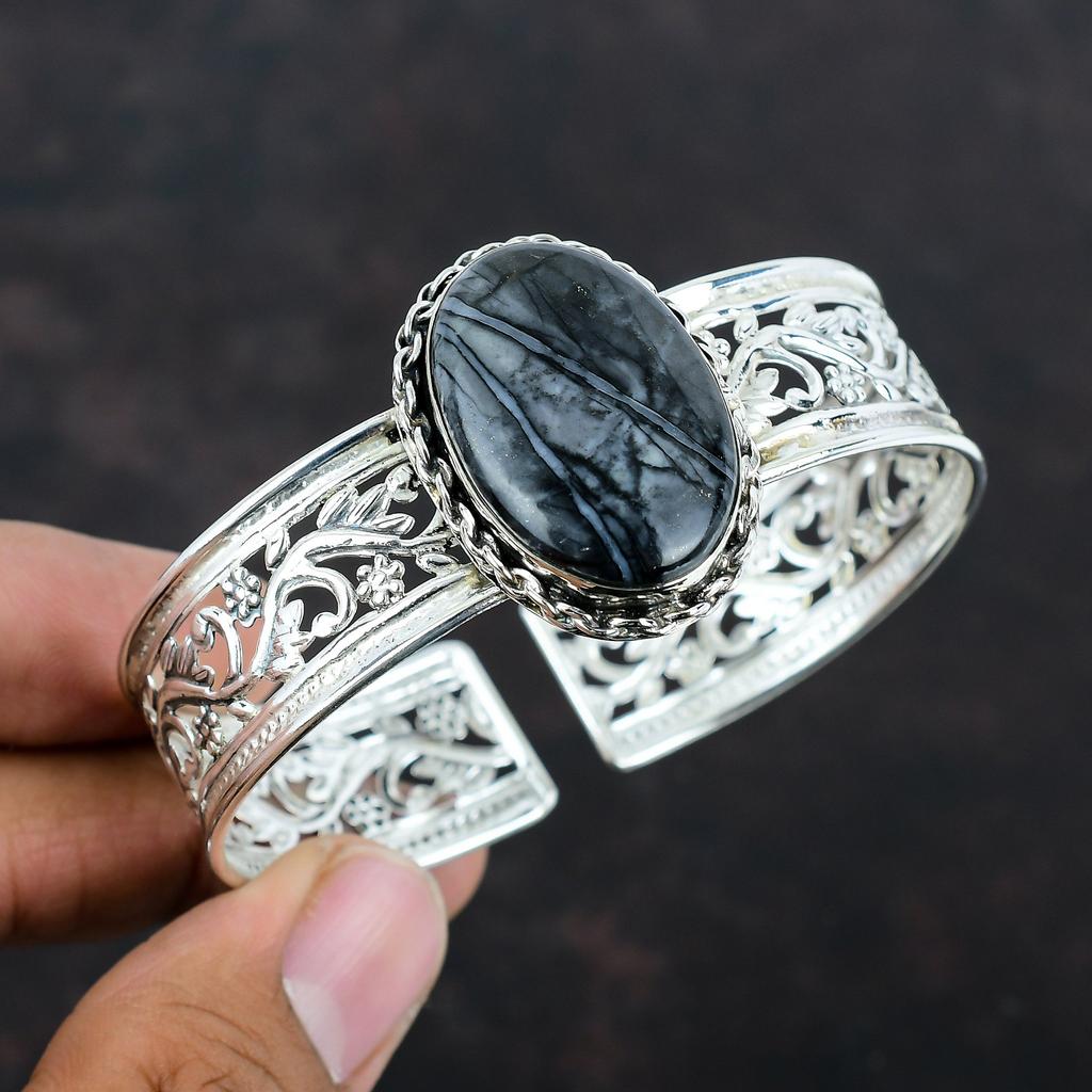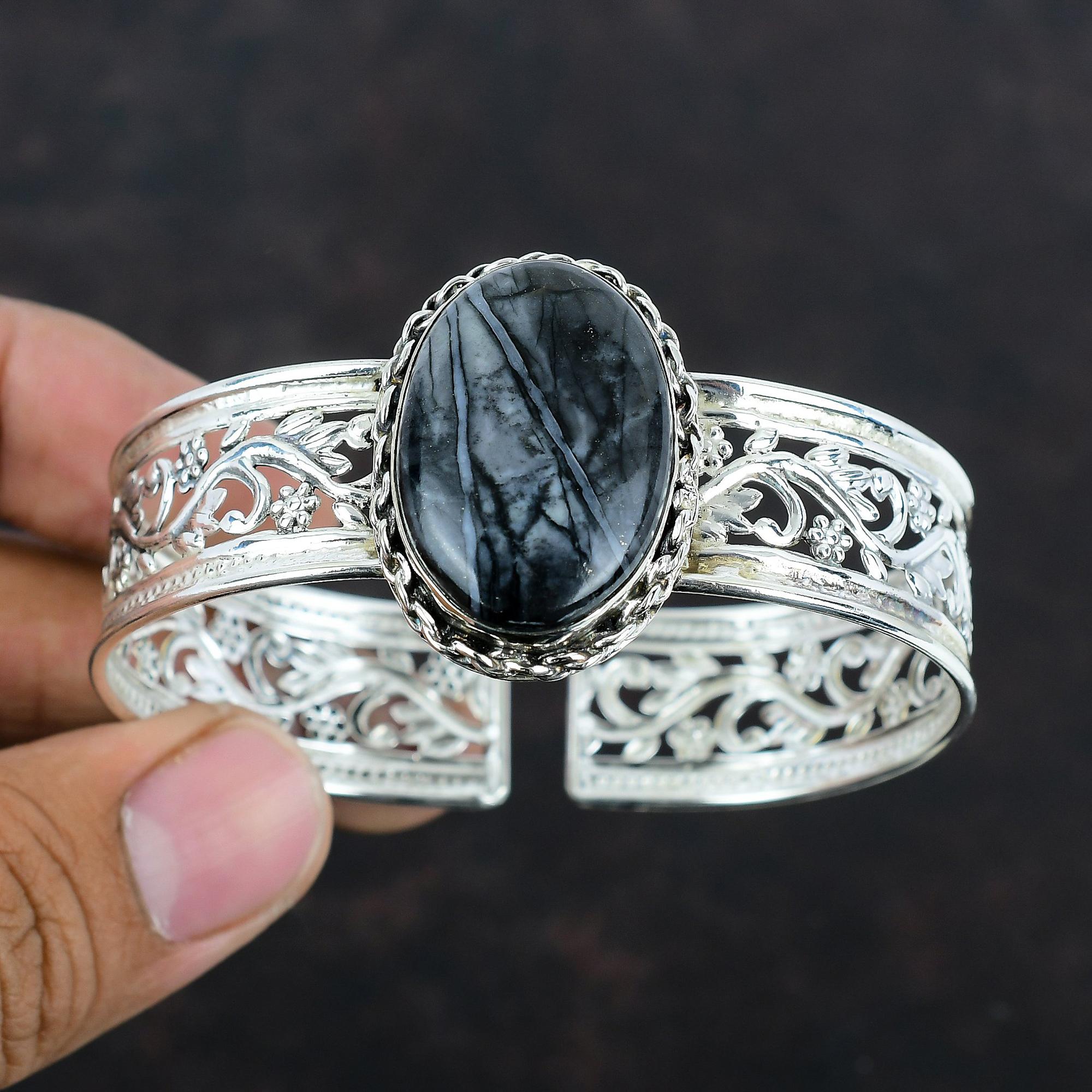 Браслет Пикассо Джаспер с драгоценными камнями, уникальный браслет-манжета из стерлингового серебра 925 пробы, регулируемый браслет ручной работы, серебряные украшения для подарков
