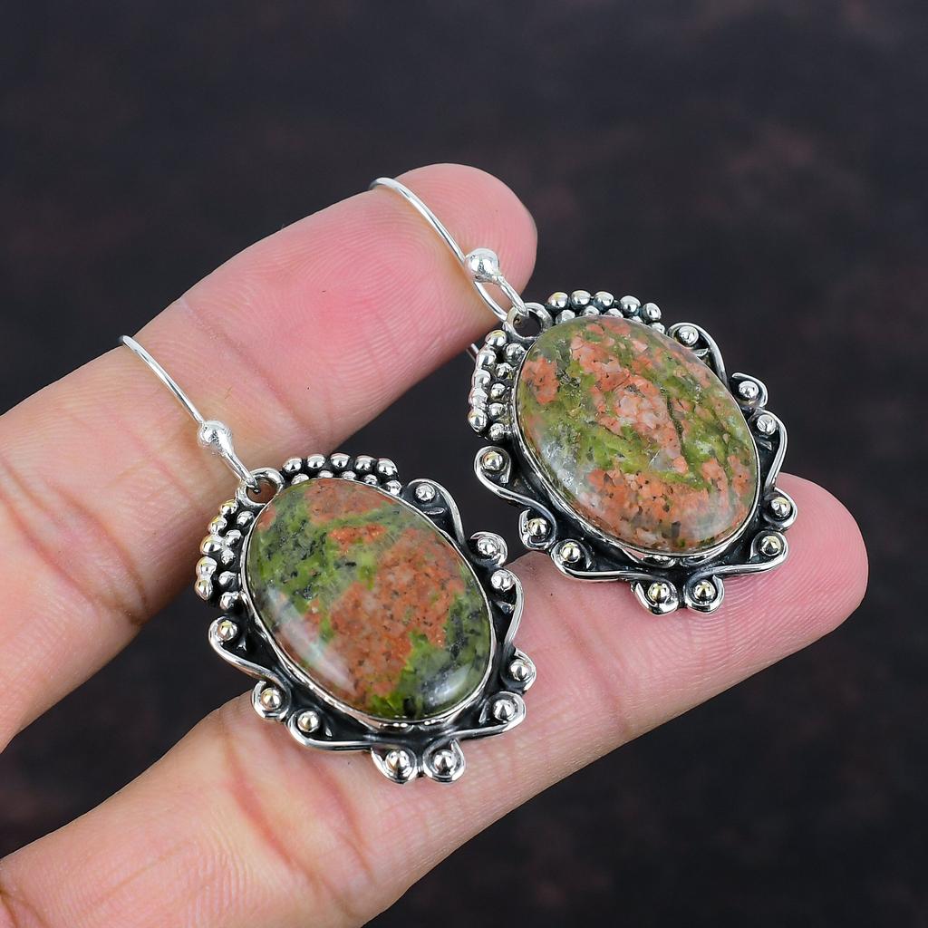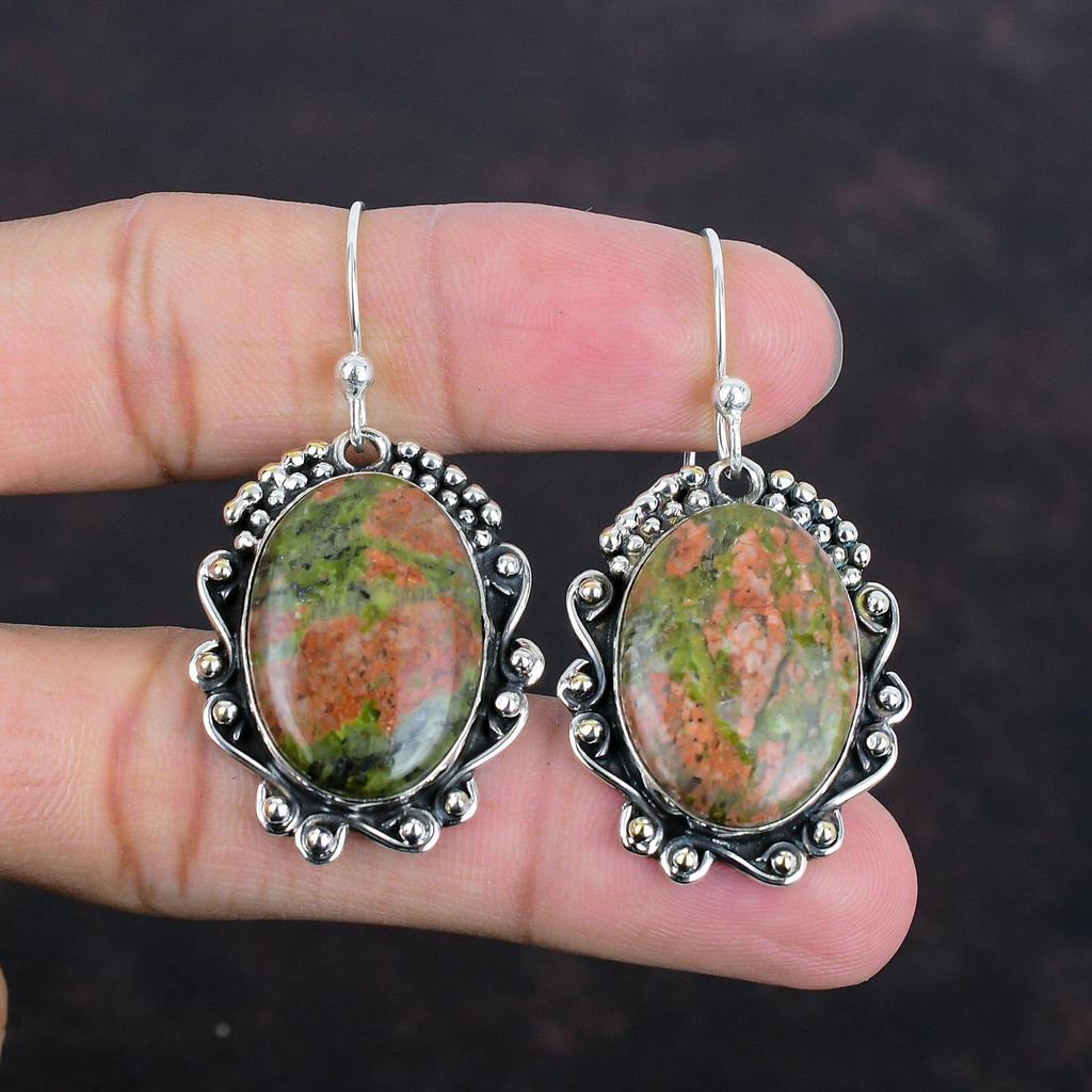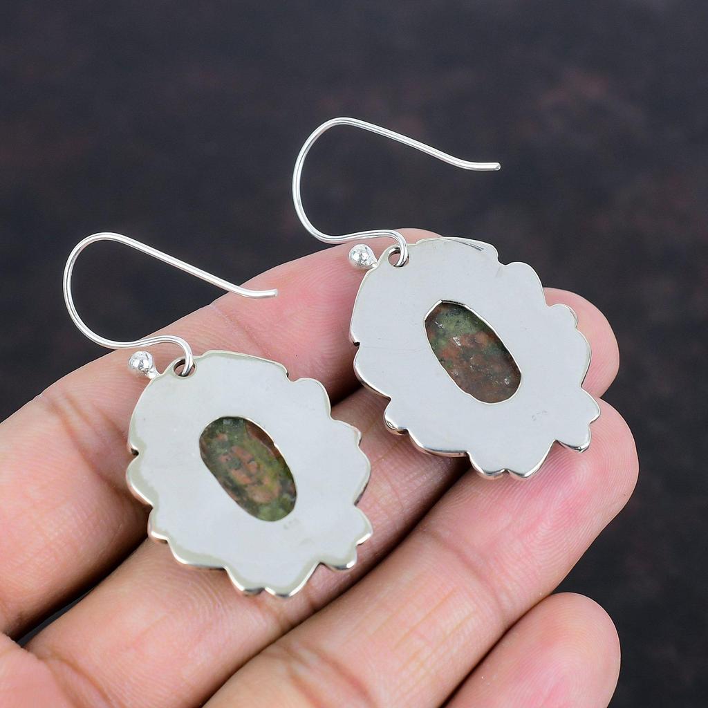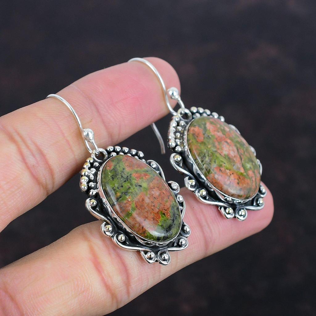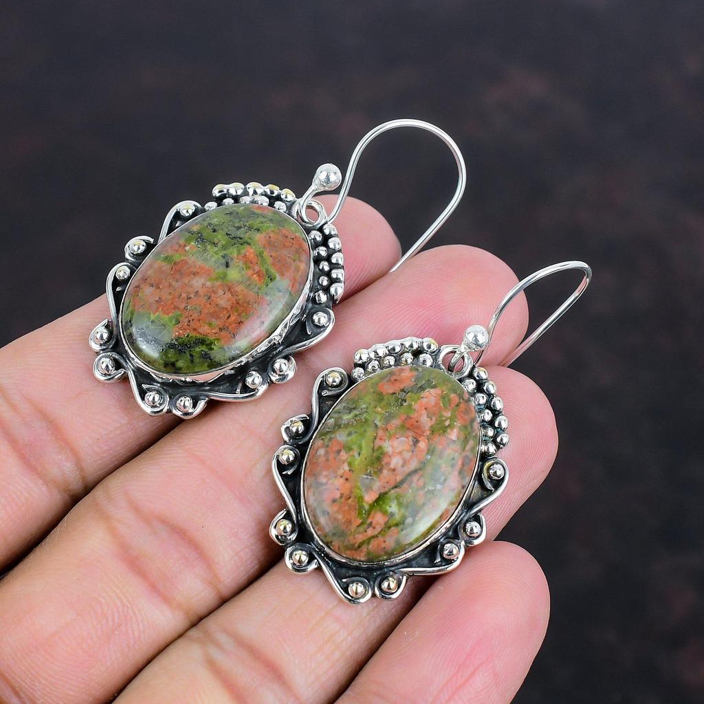 Серьги Unakite Серьги с драгоценными камнями Серьги ручной работы Элегантные ювелирные изделия Серьги из стерлингового серебра 925 пробы Дизайнерские серьги Подарки для мамы Приличные ювелирные изделия