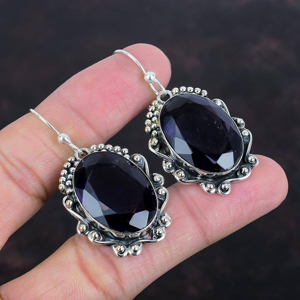 Серьги с граненым африканским аметистом, натуральные драгоценные камни, серьги из стерлингового серебра 925 пробы, стильные серьги ручной работы, изящные серьги, свадебные подарки
