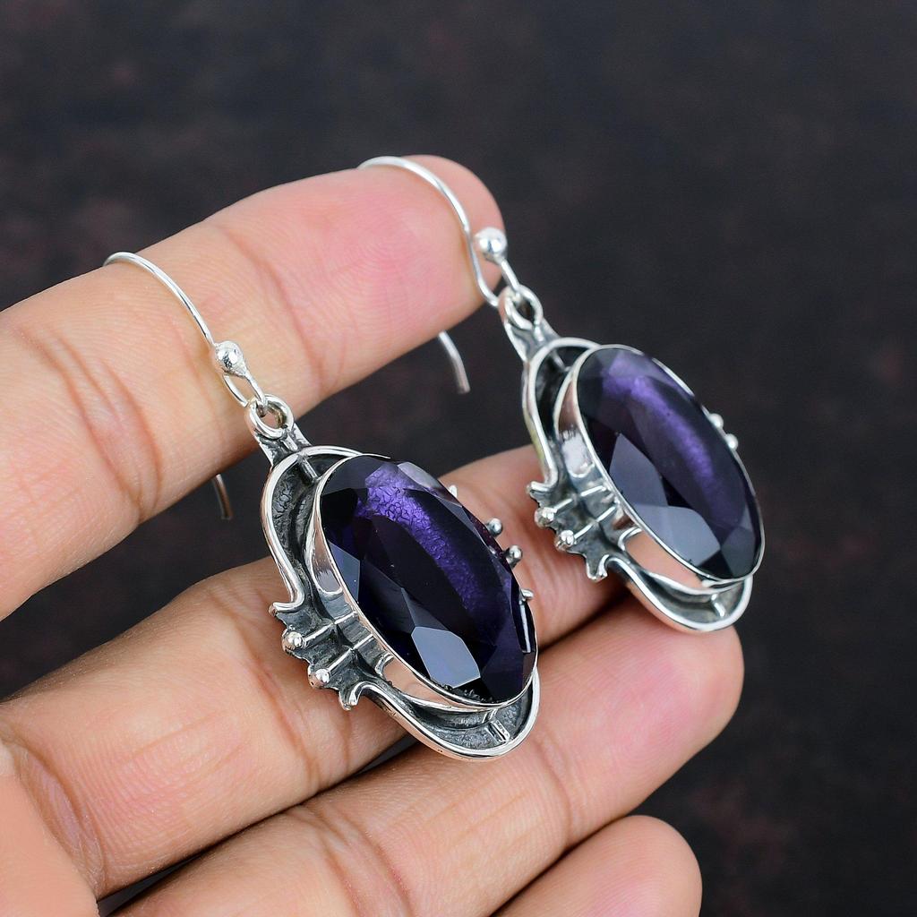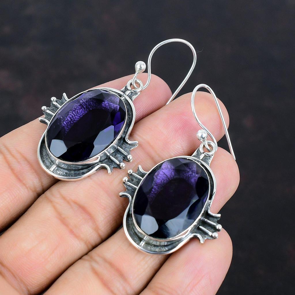Серьги с граненым африканским аметистом, серебряные серьги 925 пробы, серьги с драгоценными камнями ручной работы, изящные серьги с африканским аметистом, ювелирное украшение в подарок для нее