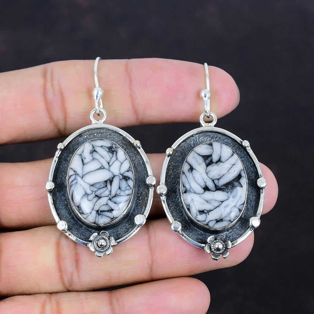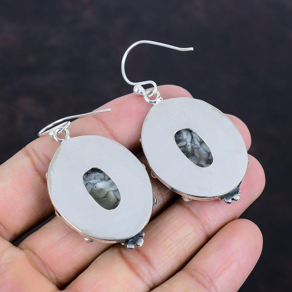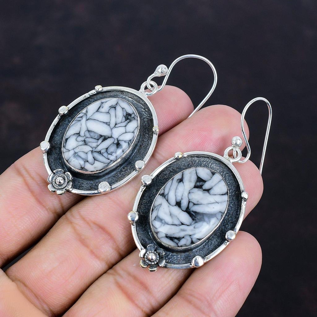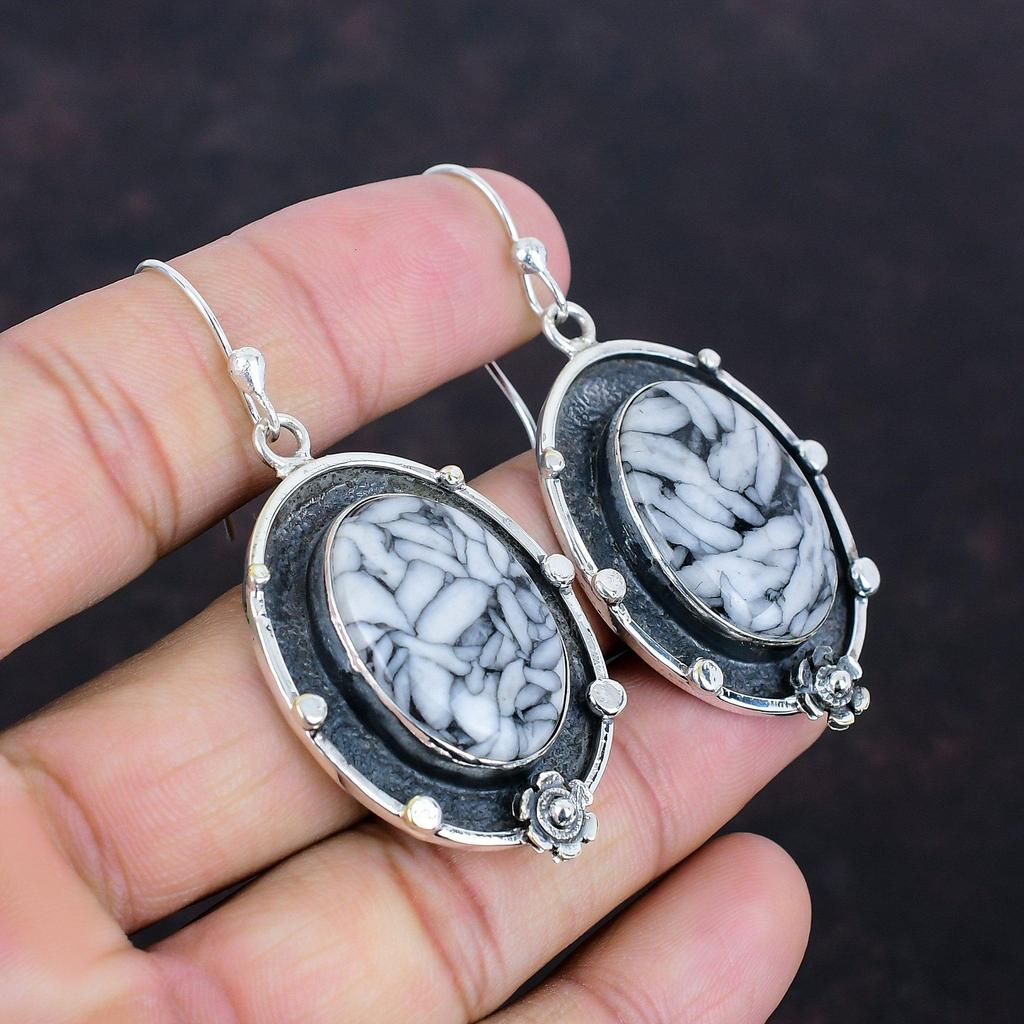 Серьги из яшмы Pinolith, 925 пробы, серьги из стерлингового серебра, серьги с драгоценными камнями, ювелирные изделия из яшмы Pinolith, уникальные висячие серьги, подарки для женщин