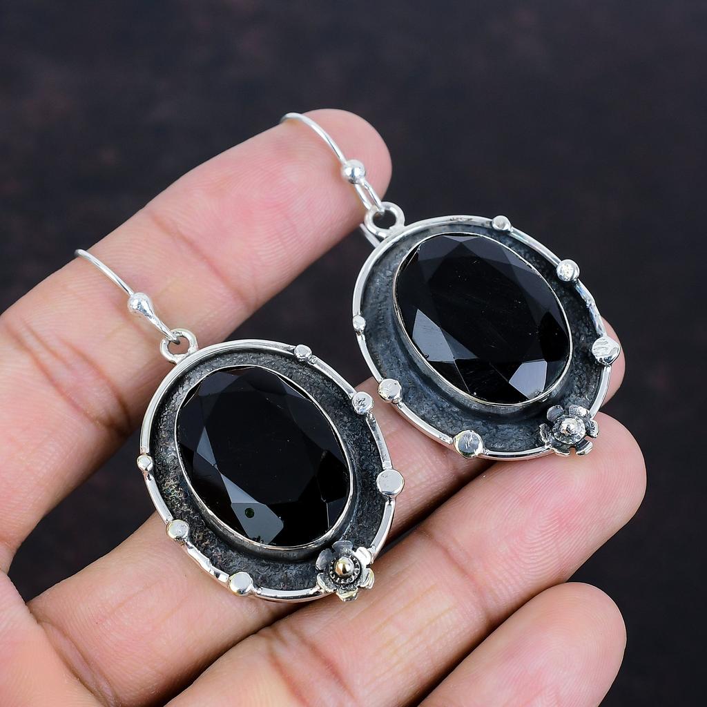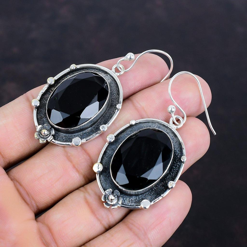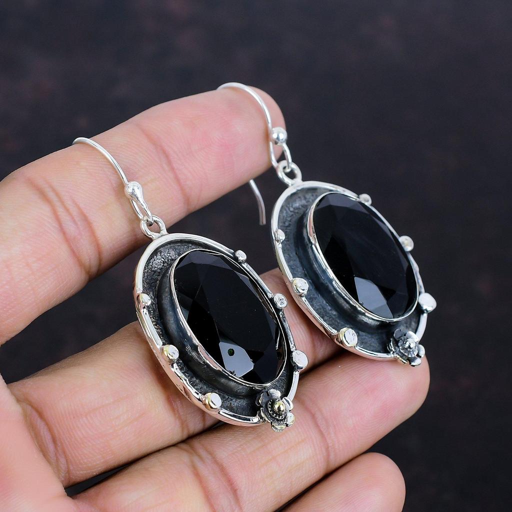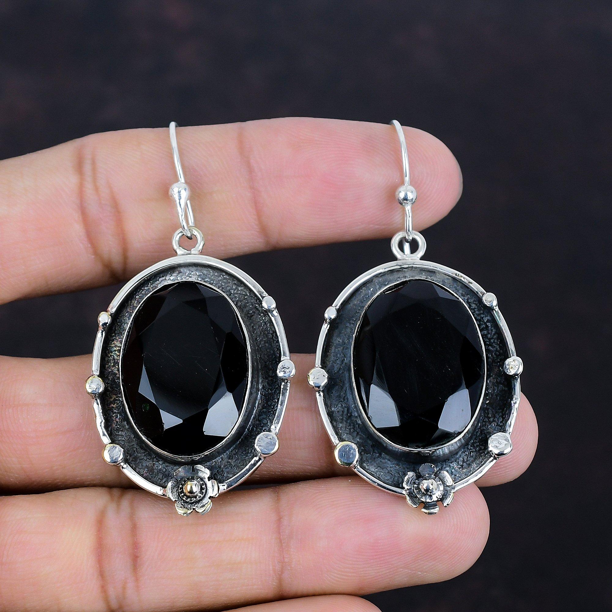 Серьги из граненого черного оникса, ювелирные изделия ручной работы, серьги-подвески из драгоценных камней, серьги из стерлингового серебра 925 пробы, замечательные ювелирные изделия из черного оникса, подарки для мамы