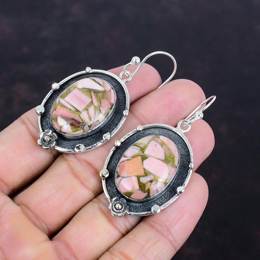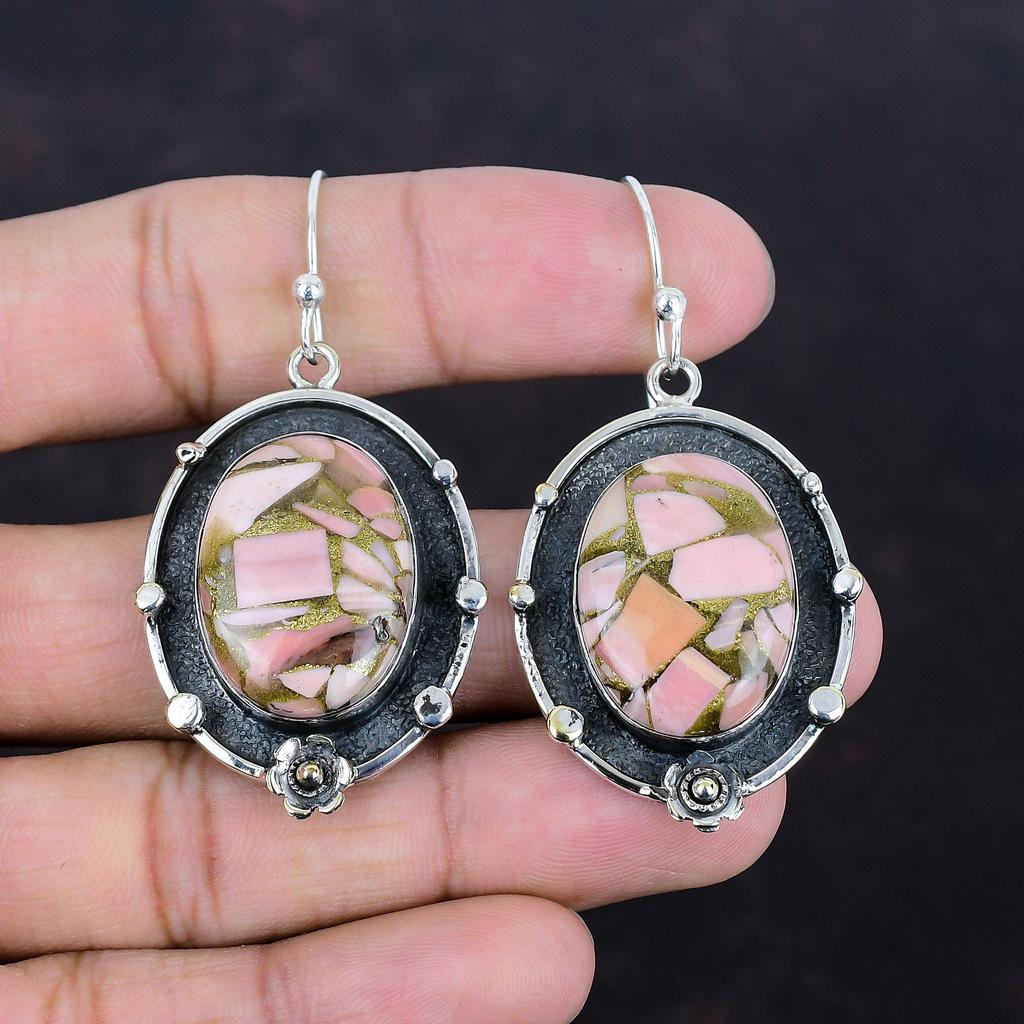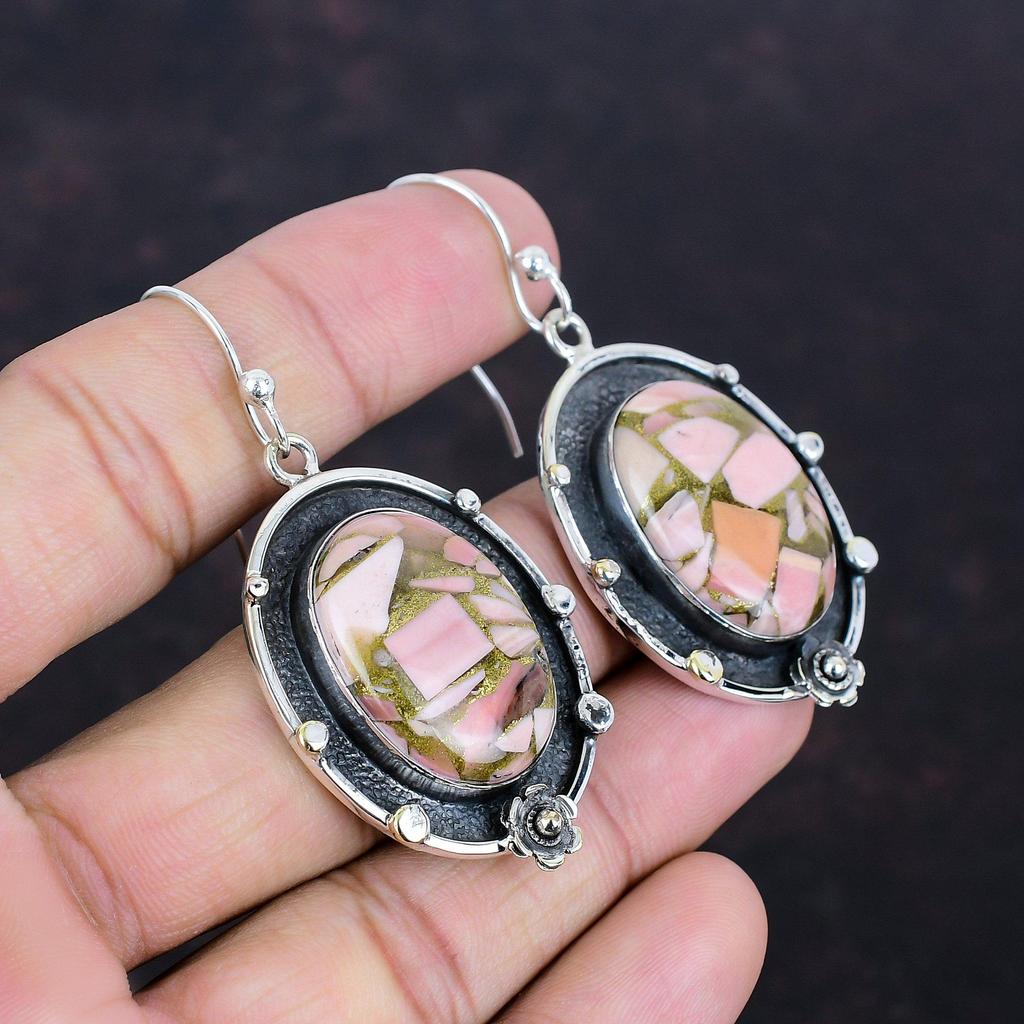 Медные серьги с розовым опалом, натуральные драгоценные камни, антикварные украшения, серьги из стерлингового серебра 925 пробы, серьги-подвески, украшения ручной работы, подарки для жены
