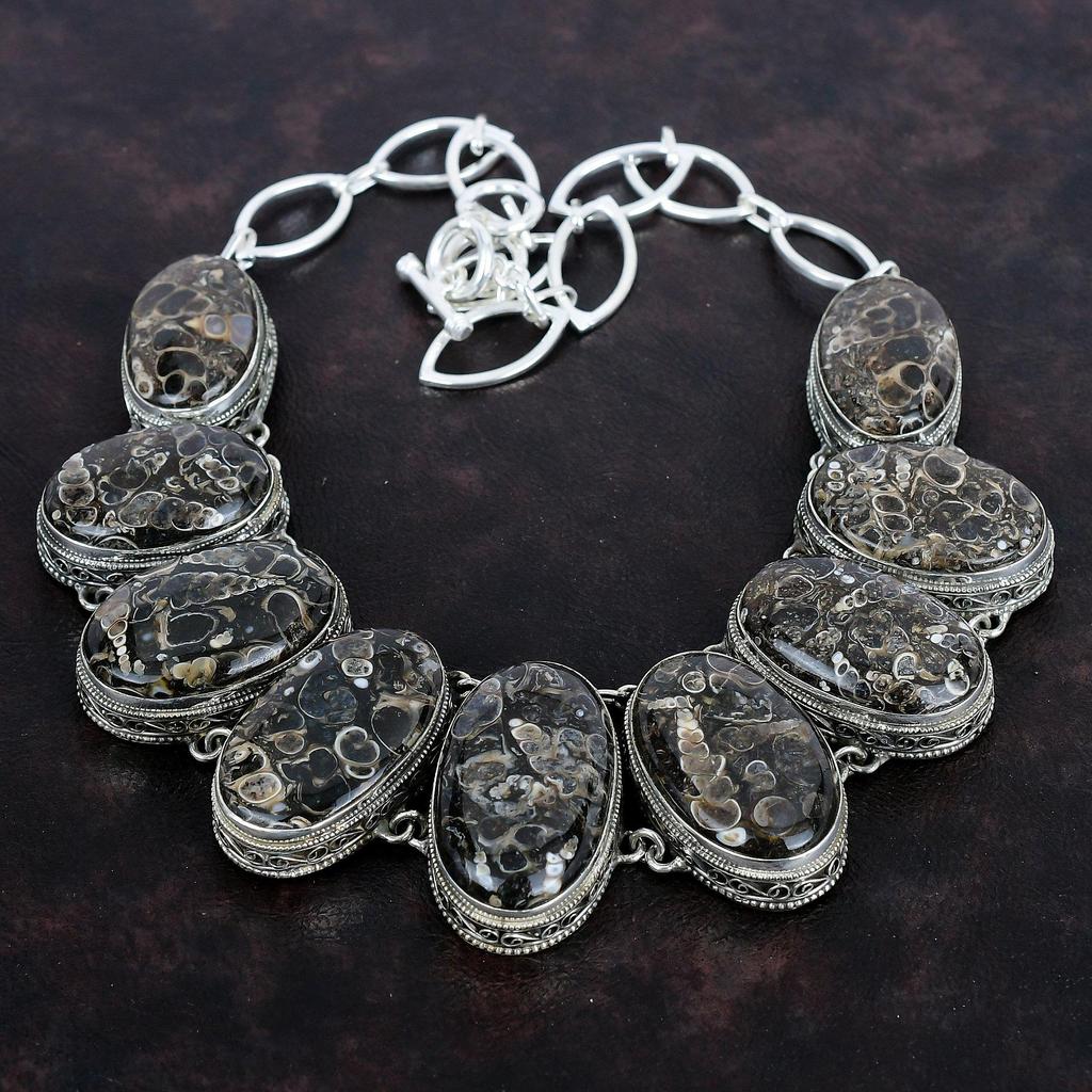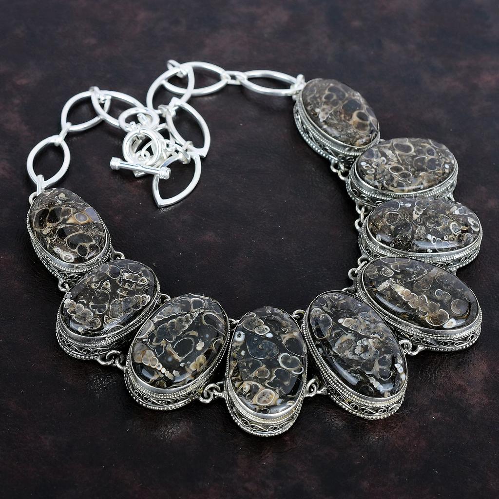 Ожерелье из драгоценного камня Turritella Agate, ожерелье из стерлингового серебра 925 пробы, винтажное ожерелье, регулируемое ожерелье из цепочки, ювелирные изделия ручной работы, подарки на помолвку